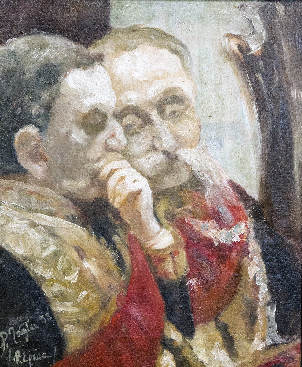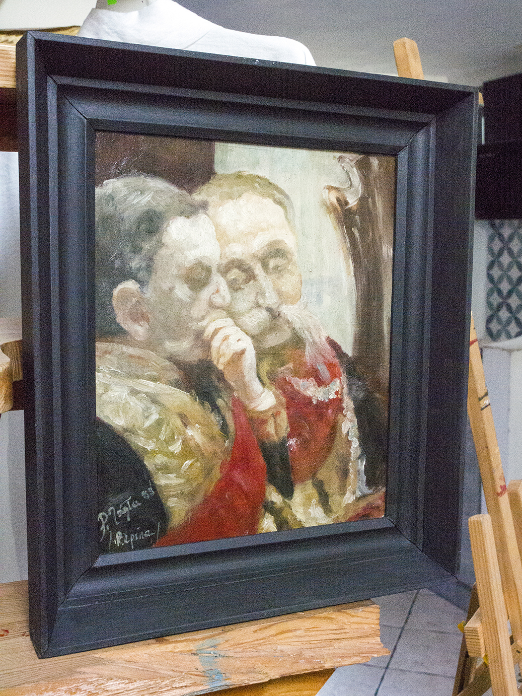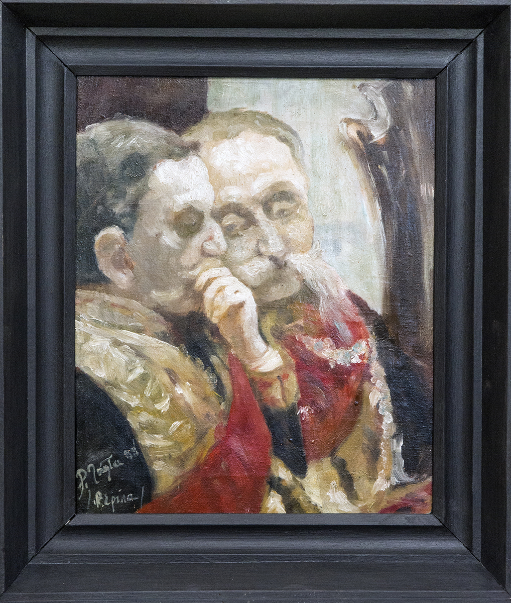 Obraz olejny na płótnie lnianym , autorski na podstawie oryginału mistrza Ilja Riepina nie jest formą kopiowania lecz nauki z okresu mojej młodości.Powstał w 1988r .Praca odrestaurowana łącznie z ramą i werniksowana.Wymiar samej pracy to 31 x 26 cmRama:40 x 34,5 x 4 cmPraca sygnowana z przodu,certyfikat autentyczności