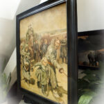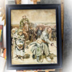 Obraz namalowany w 1988r jest fragmentem dzieła Mistrza Ilija Repina „Procesja w guberni kurskiej”.Nie była to bynajmniej próba kopiowania,ponieważ było by to za mocne określenie lecz nauka malarstwa i ćwiczenie w czasie kiedy byłem młodym człowiekiem.Obraz olejny na płótnie lnianym w ramie dębowej w grafitowym kolorze.Wymiary płótna : 54,5 x 65Wymiary ramy : 64,5 x 76W załączeniu certyfikat autentyczności