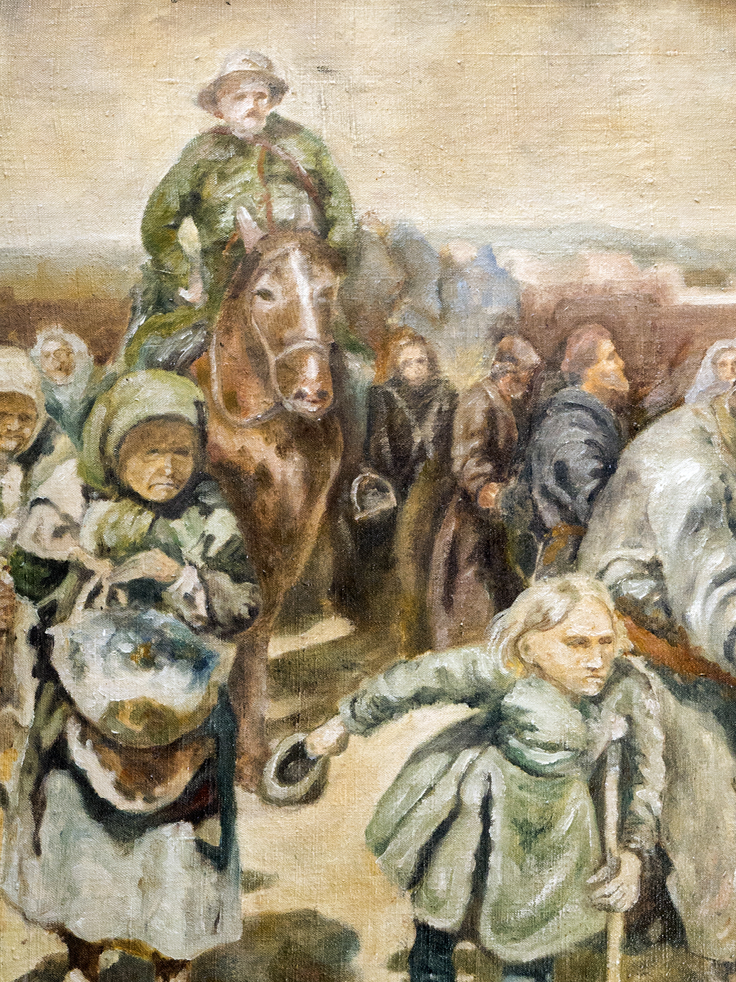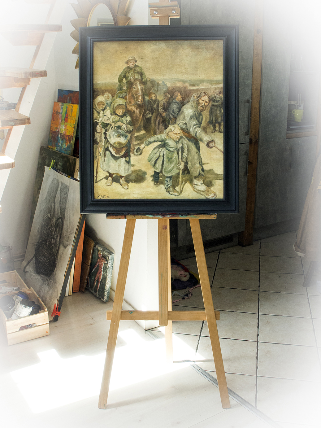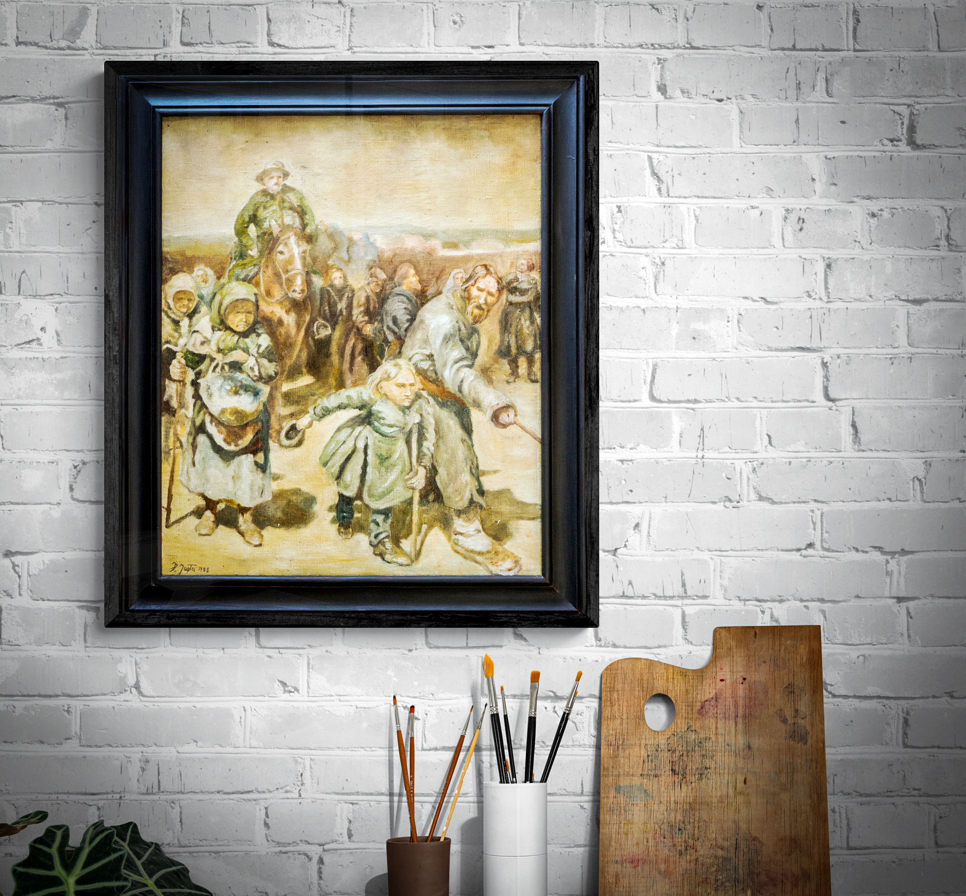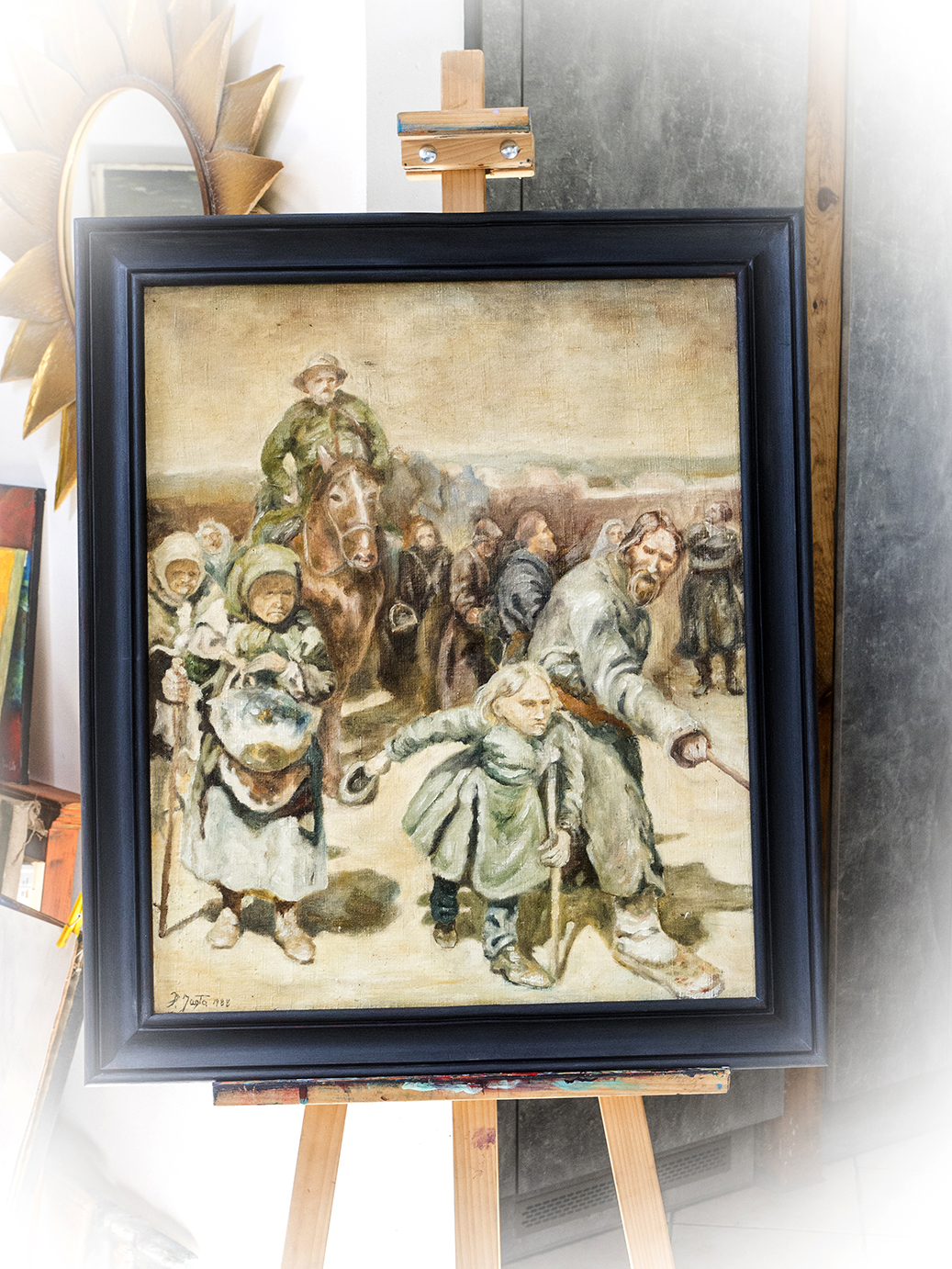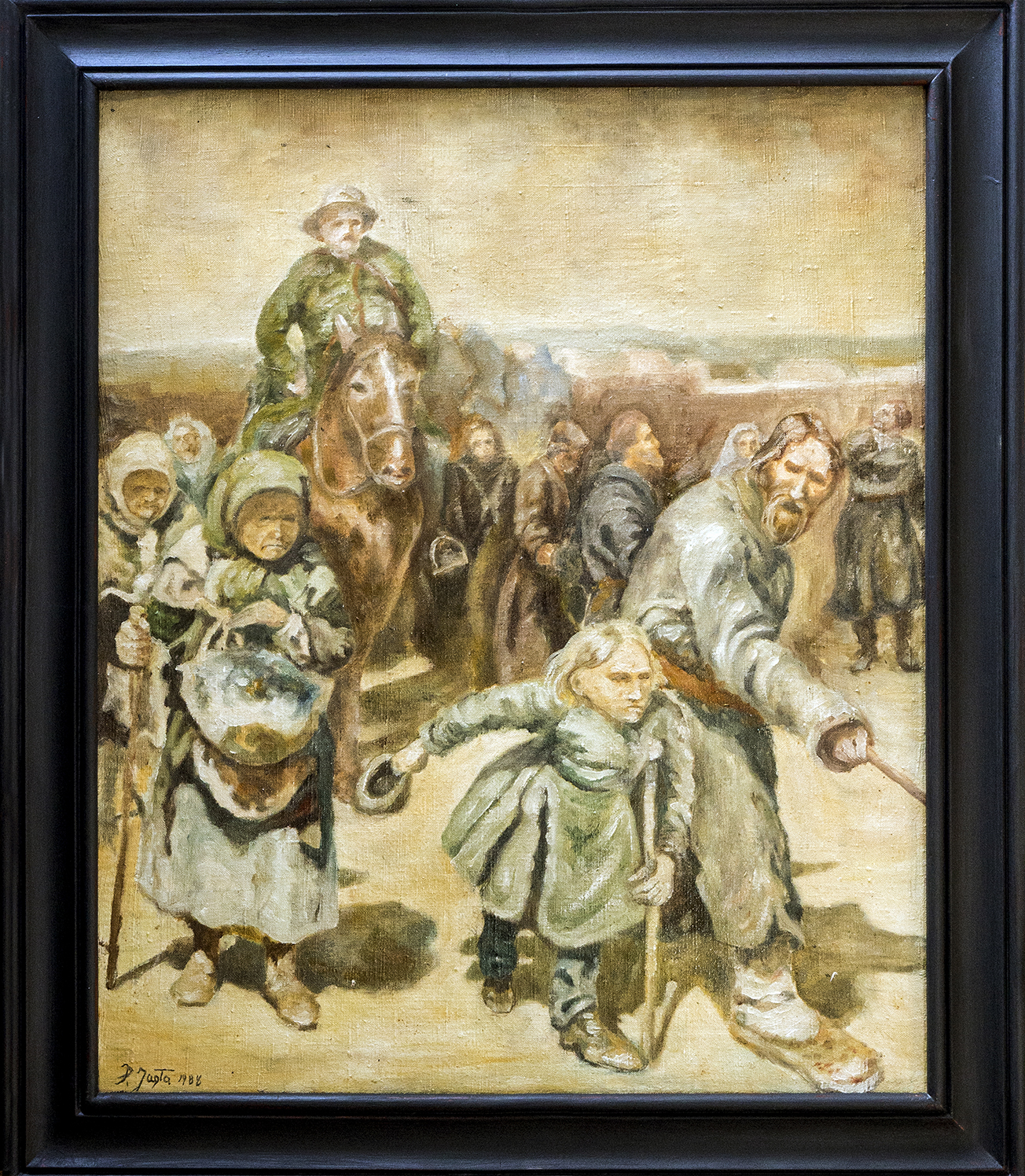Obraz namalowany w 1988r jest fragmentem dzieła Mistrza Ilija Repina „Procesja w guberni kurskiej”.Nie była to bynajmniej próba kopiowania,ponieważ było by to za mocne określenie lecz nauka malarstwa i ćwiczenie w czasie kiedy byłem młodym człowiekiem.Obraz olejny na płótnie lnianym w ramie dębowej w grafitowym kolorze.Wymiary płótna : 54,5 x 65Wymiary ramy : 64,5 x 76W załączeniu certyfikat autentyczności