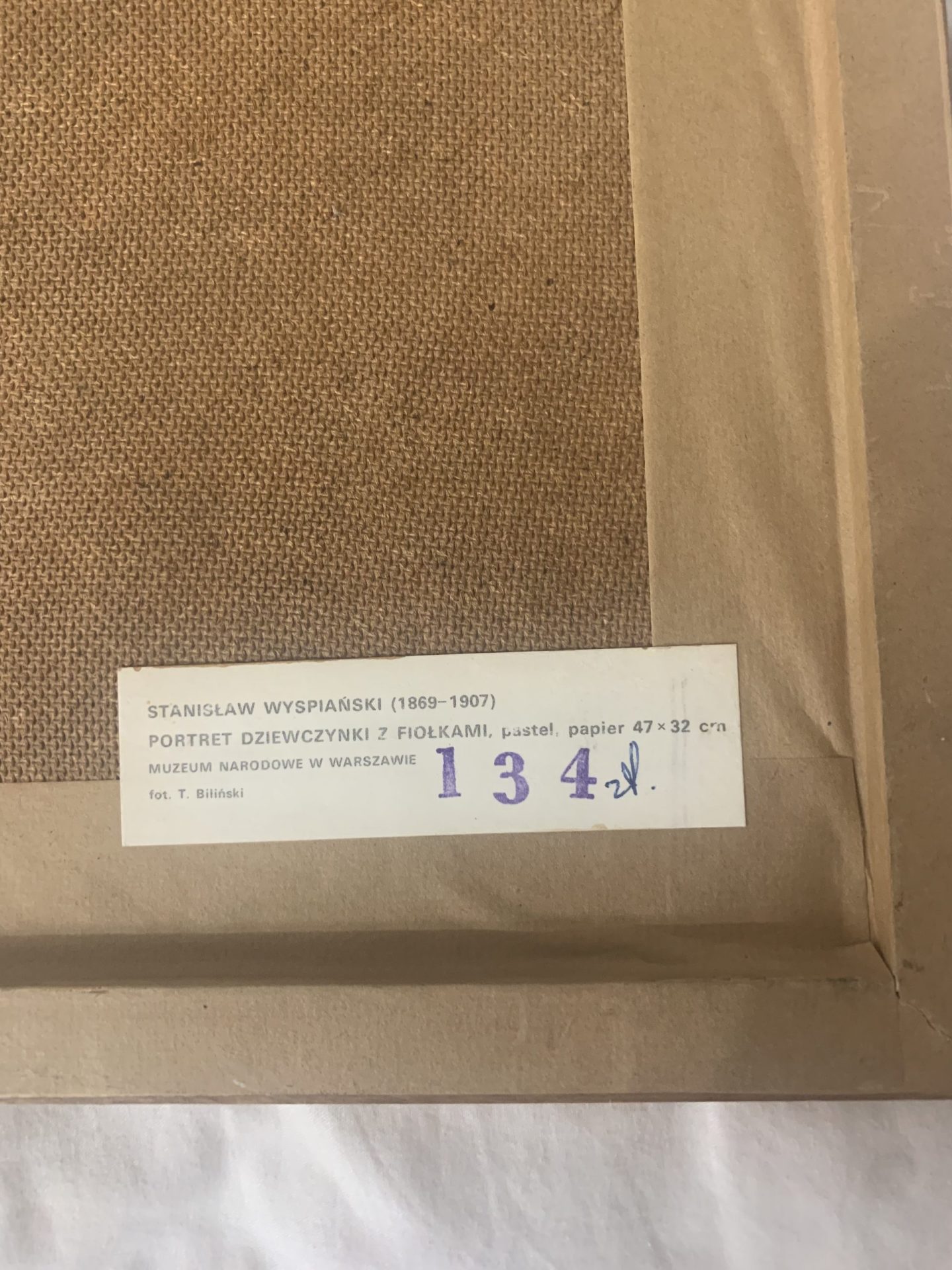 Obraz autorstwa Stanisława Wyspiańskiego pt.,,Portret dziewczynki z fiołkami”. Rama wykonana jest z drewna, wymiary obrazu to 47 cm na 32 cm