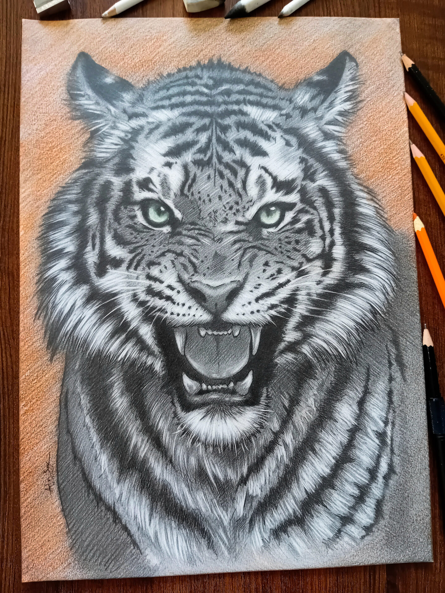 Rysunek został wykonany ołówkiem, na wysokiej jakości bezkwasowym papierze firmy Canson 1557 180g/m2, rysunek wykonany na takim papierze nie blaknie i nie zmiania odcieni. Prace dodatkowo zaimpregnowałem dwukrotnie fiksatywą. Rysunek można oprawić w ramę, może być też dobrym pomysłem na prezent.