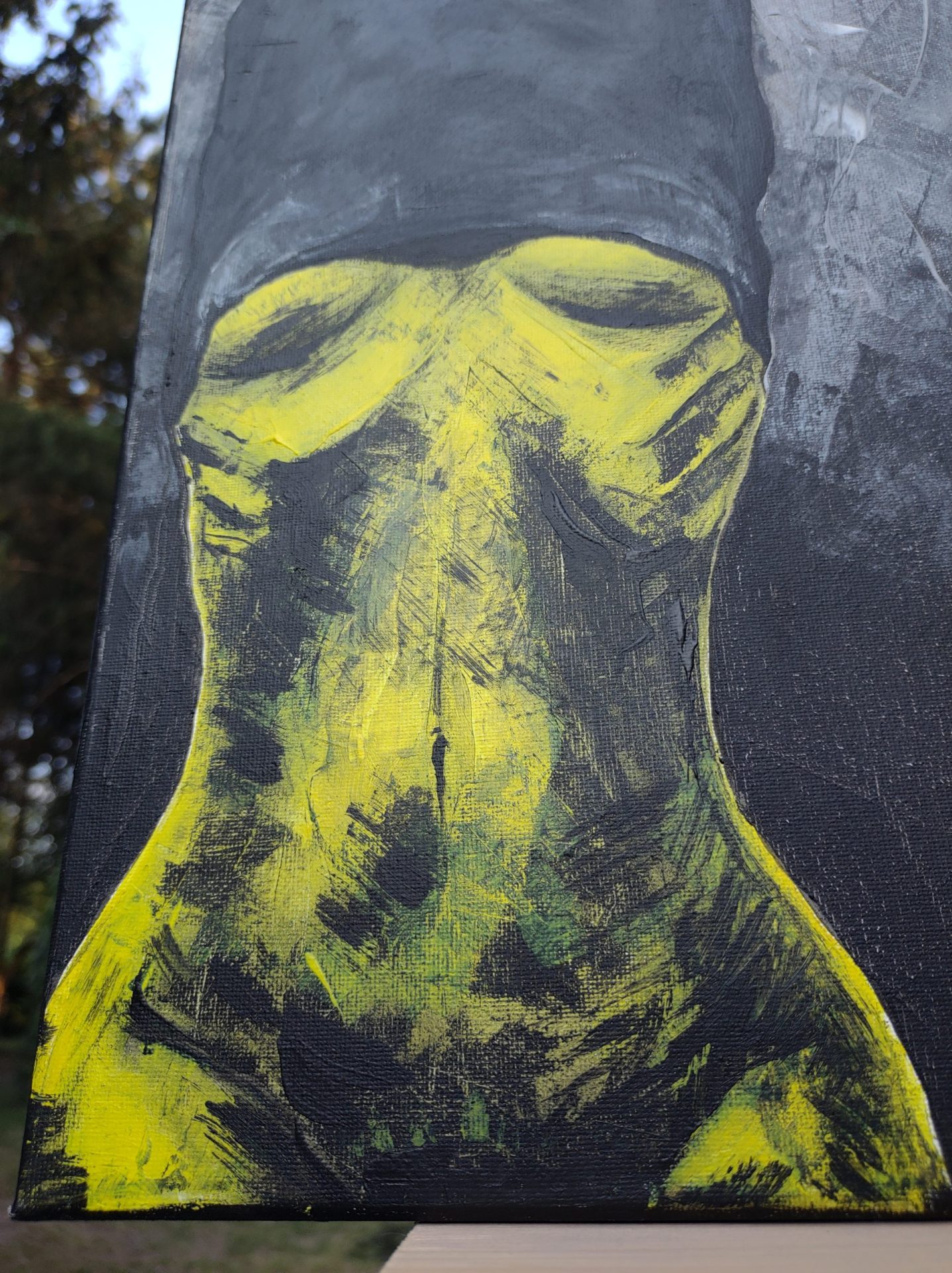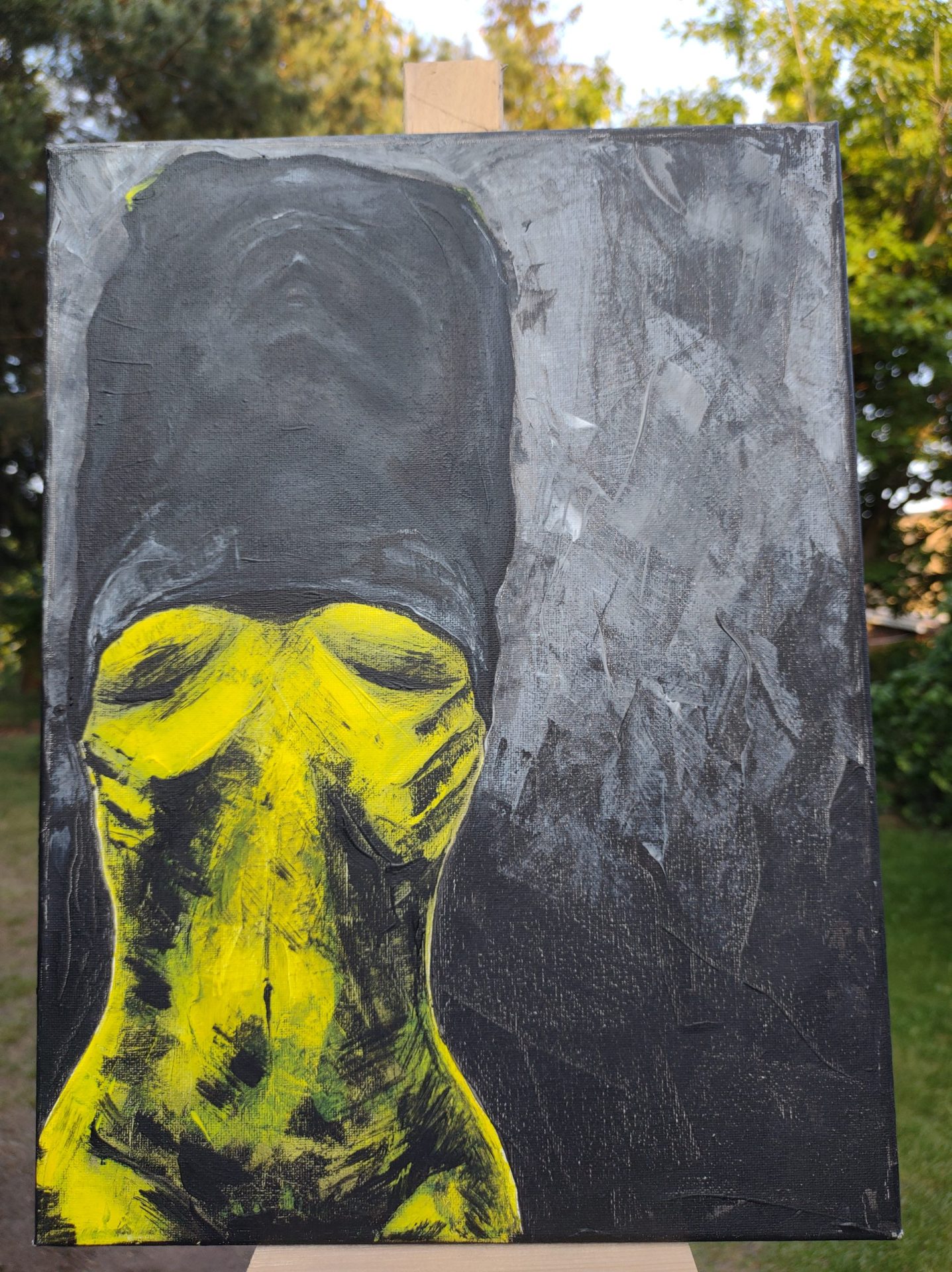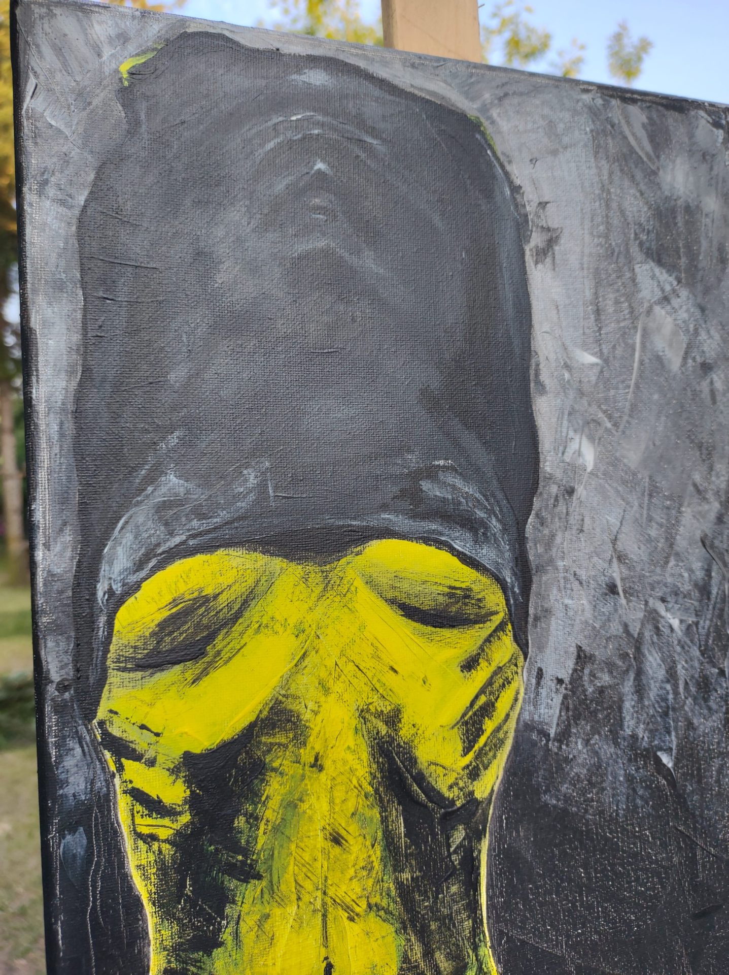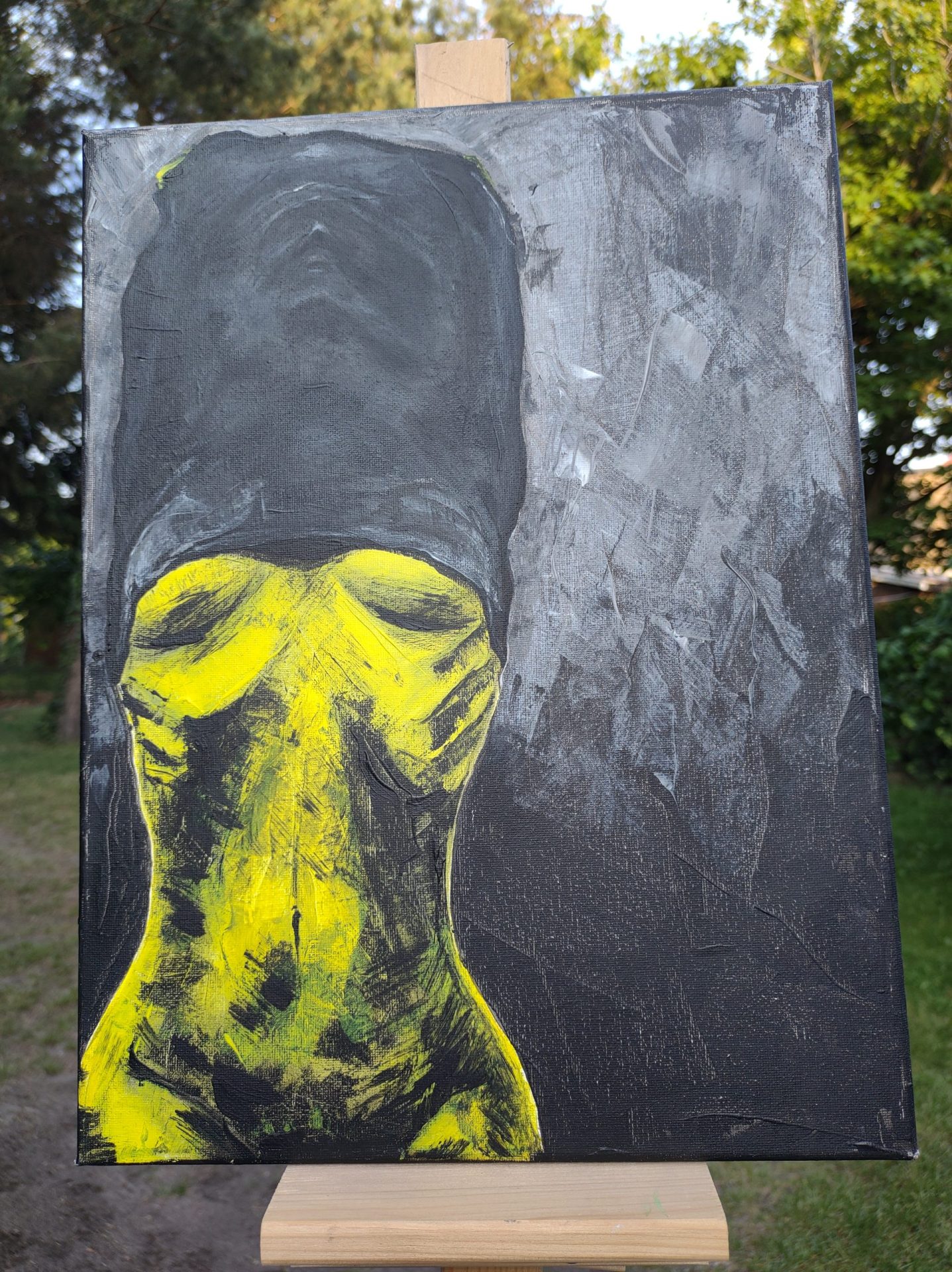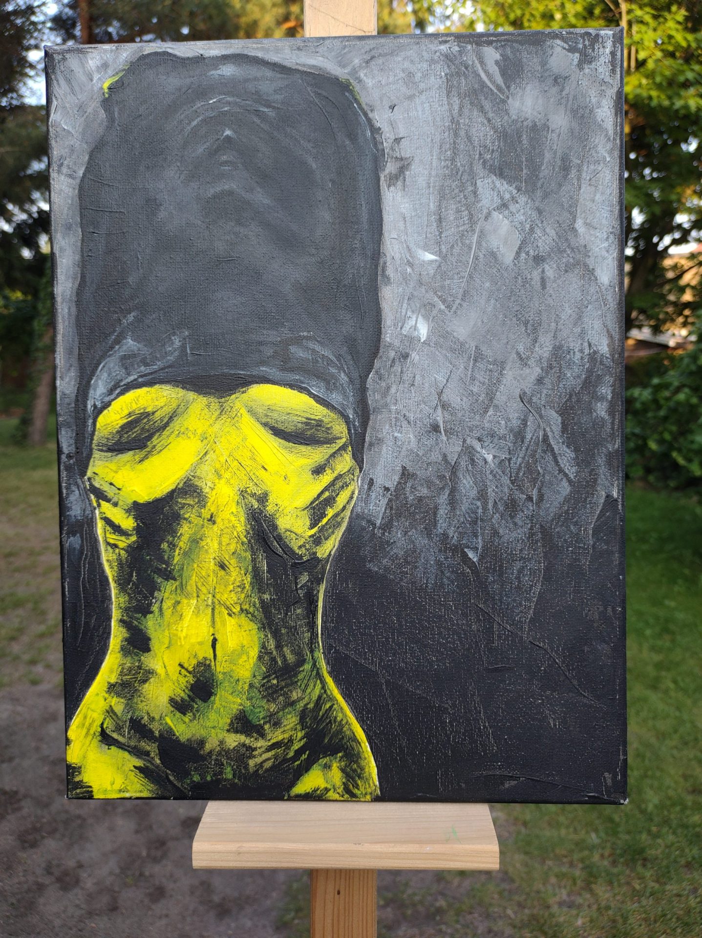 Obraz pt. ,, Upał” malowany farbami akrylowymi na płótnie bawełnianym 30×40.Boki również zamalowane, nie wymaga oprawy.
