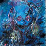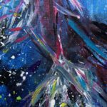 Obraz abstrakcyjny został namalowany farbami akrylowymi.