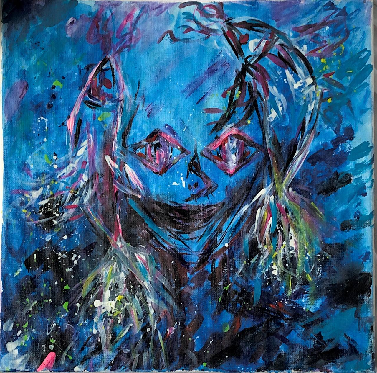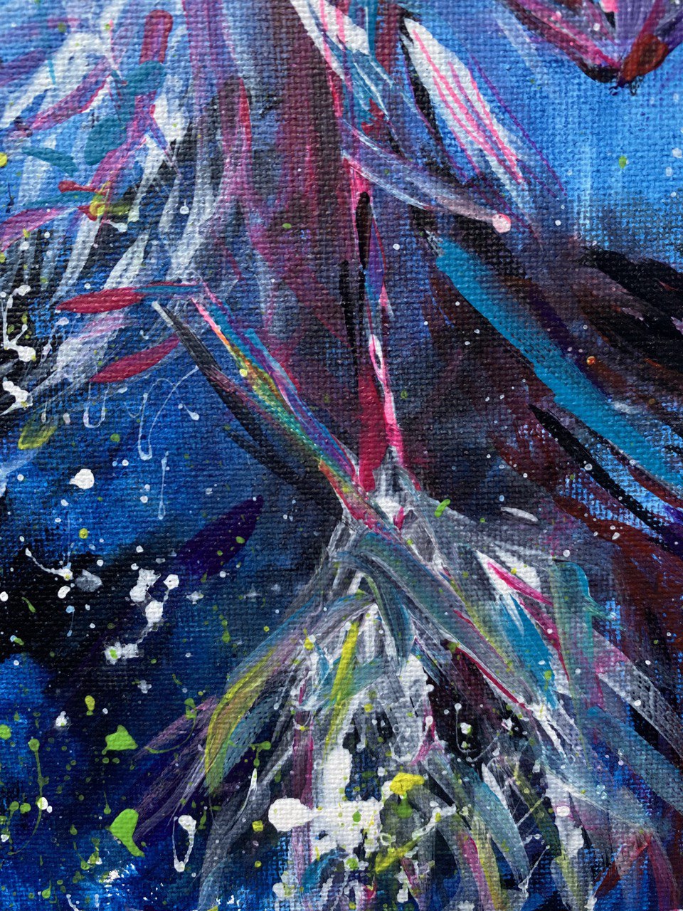 Obraz abstrakcyjny został namalowany farbami akrylowymi.