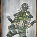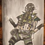 Rysunek pastelami olejnymi i przedstawia jedną z postaci z gry Apex Legends – Octane. Coś dla fanów strzelanek 😉 Typowy gameart w rozmiarze A4. Zdjęcia wykonane w różnym świetle dziennym, ciepłym , zimnym i mieszanym.