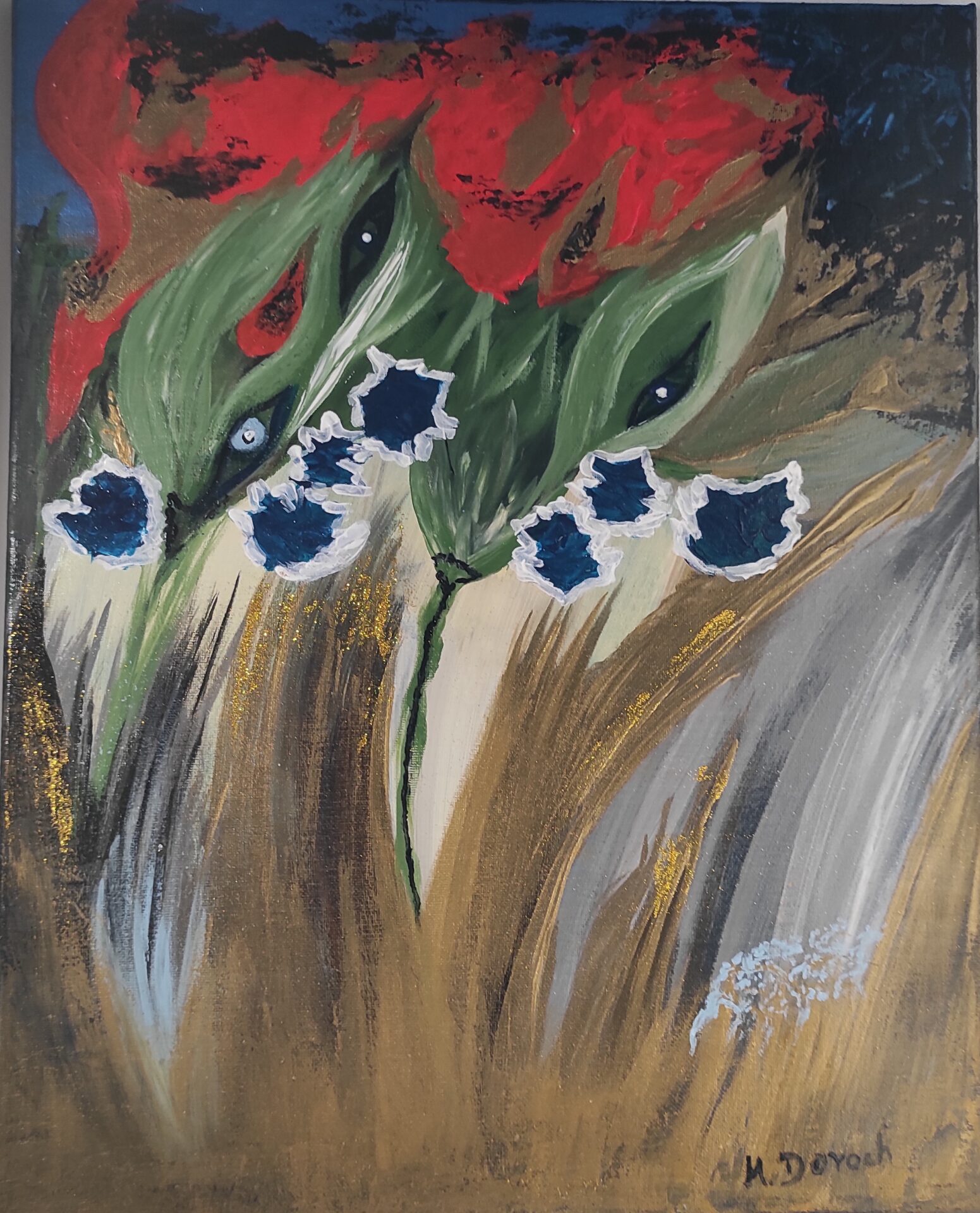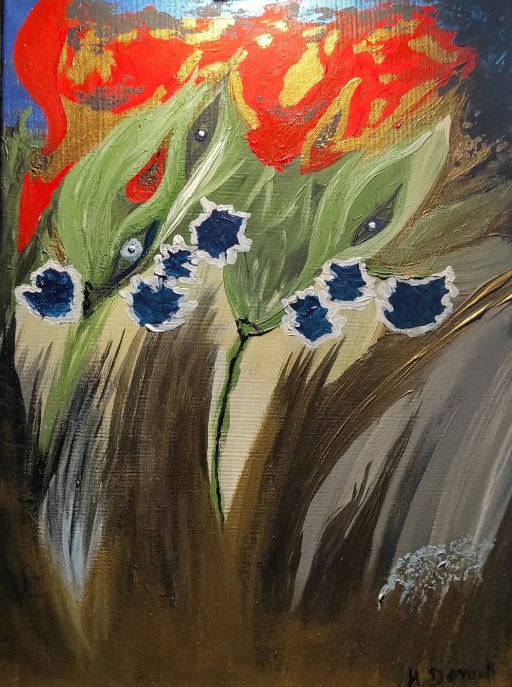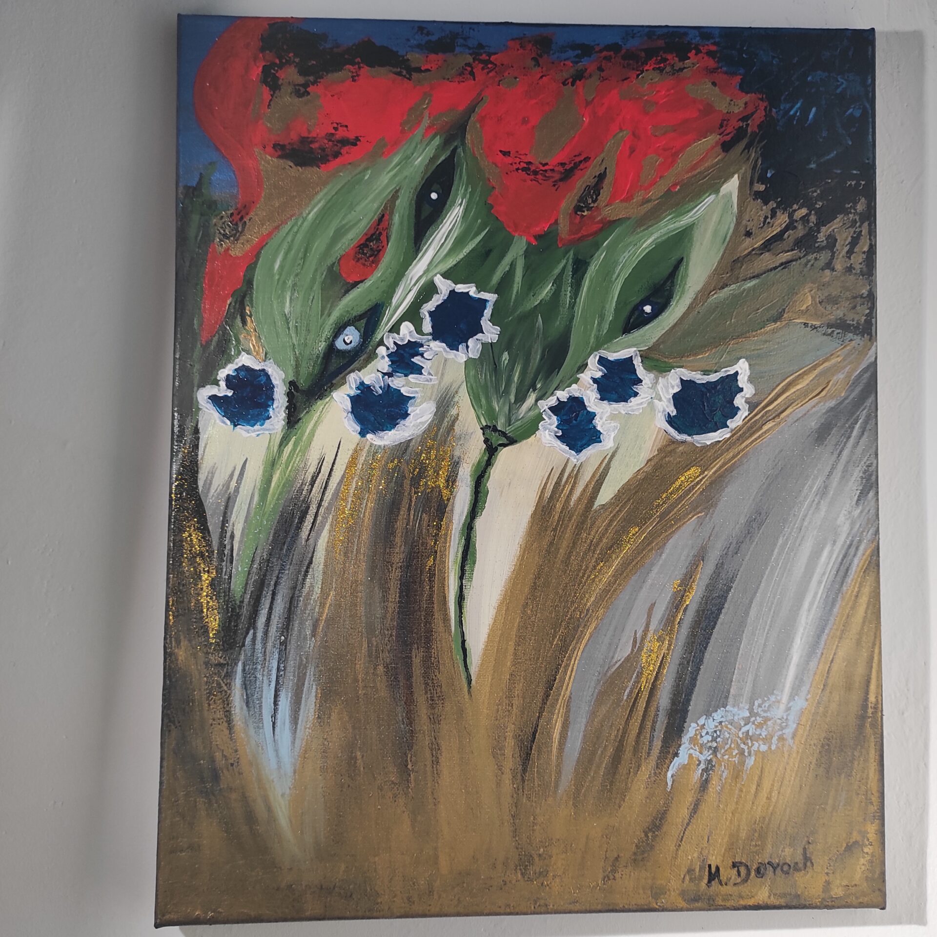 Akryl na podobraziu płóciennym bawełnianym o formacie 40/50 cm.