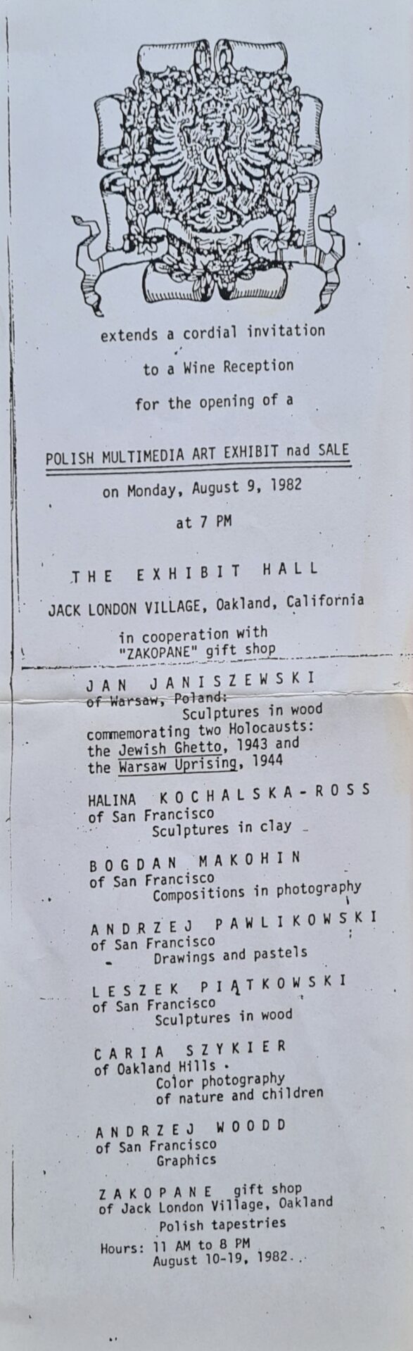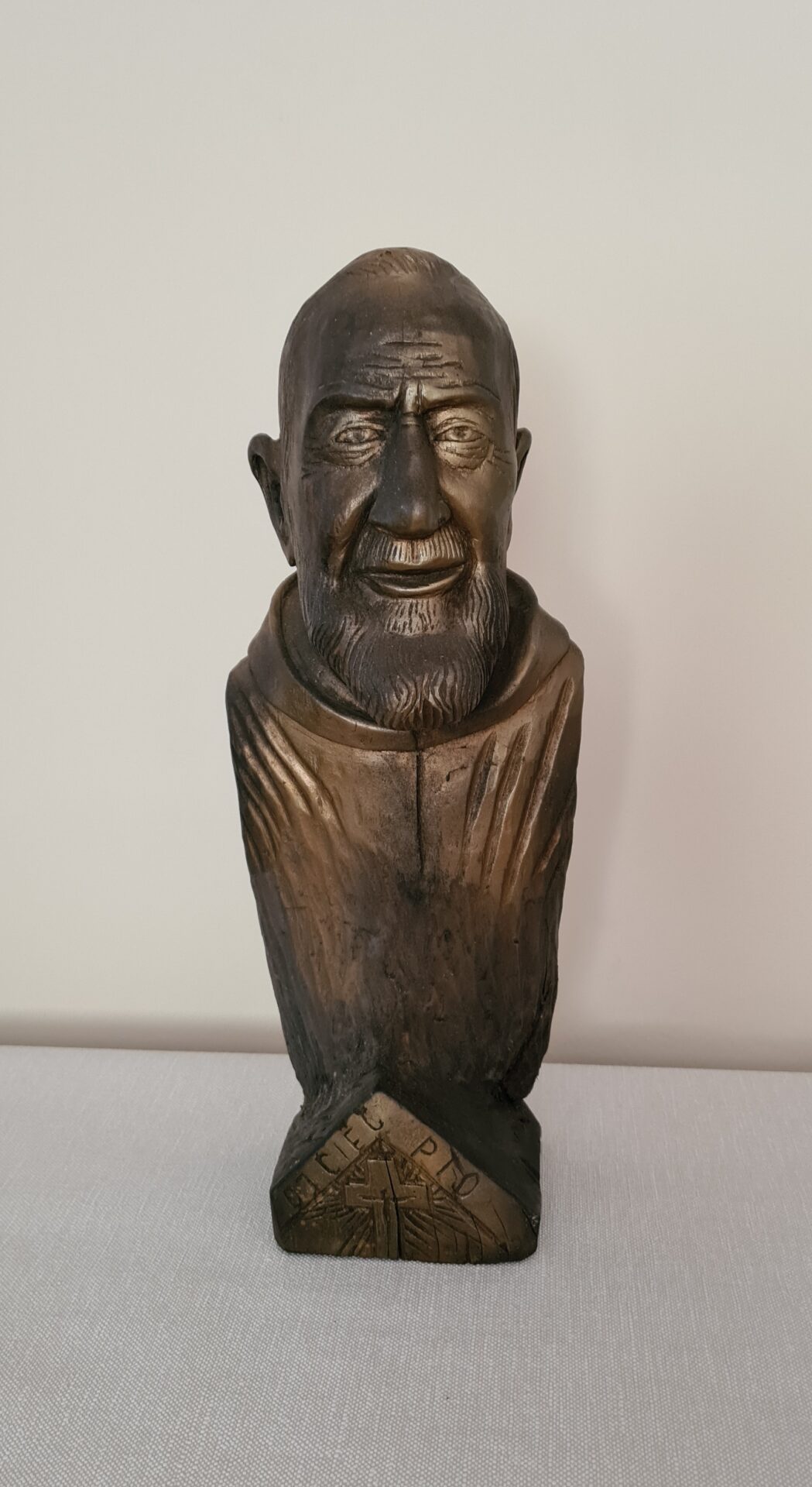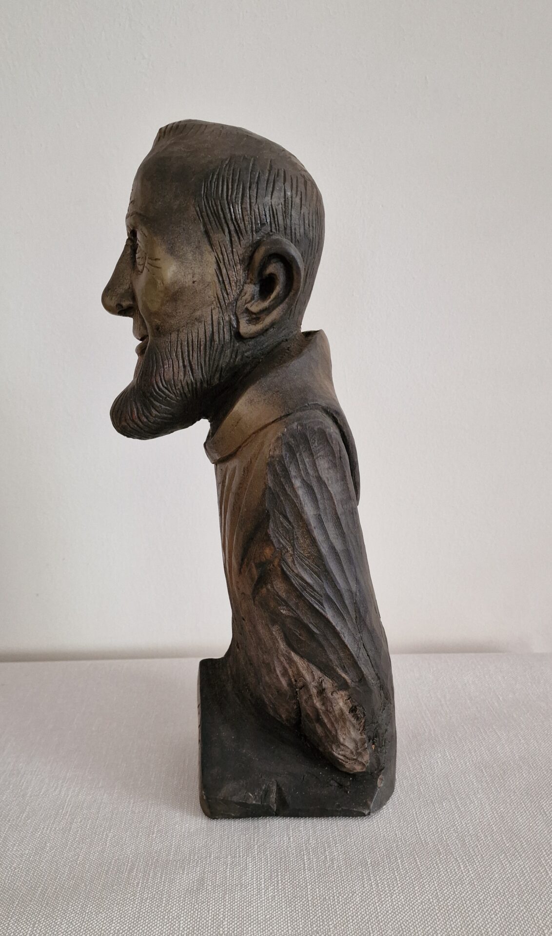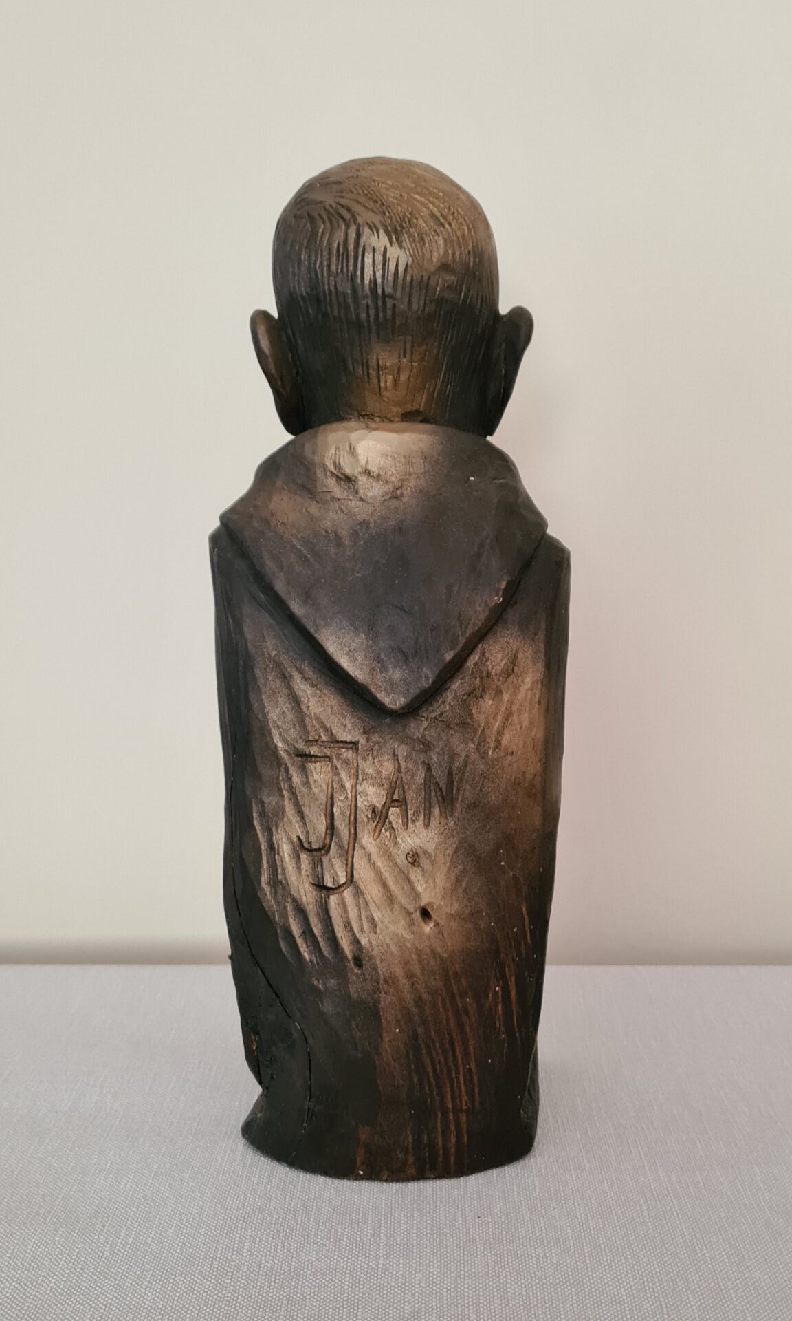 Rzeźba z drewna lipowego, autorstwa Jana Janiszewskiego (prace wystawiane w Muzeum Wojska Polskiego 1985r, Stany Zjednoczone California 1982r). Wysokość 38cm, szerokość 14cm. Waga ok 2,5 kg