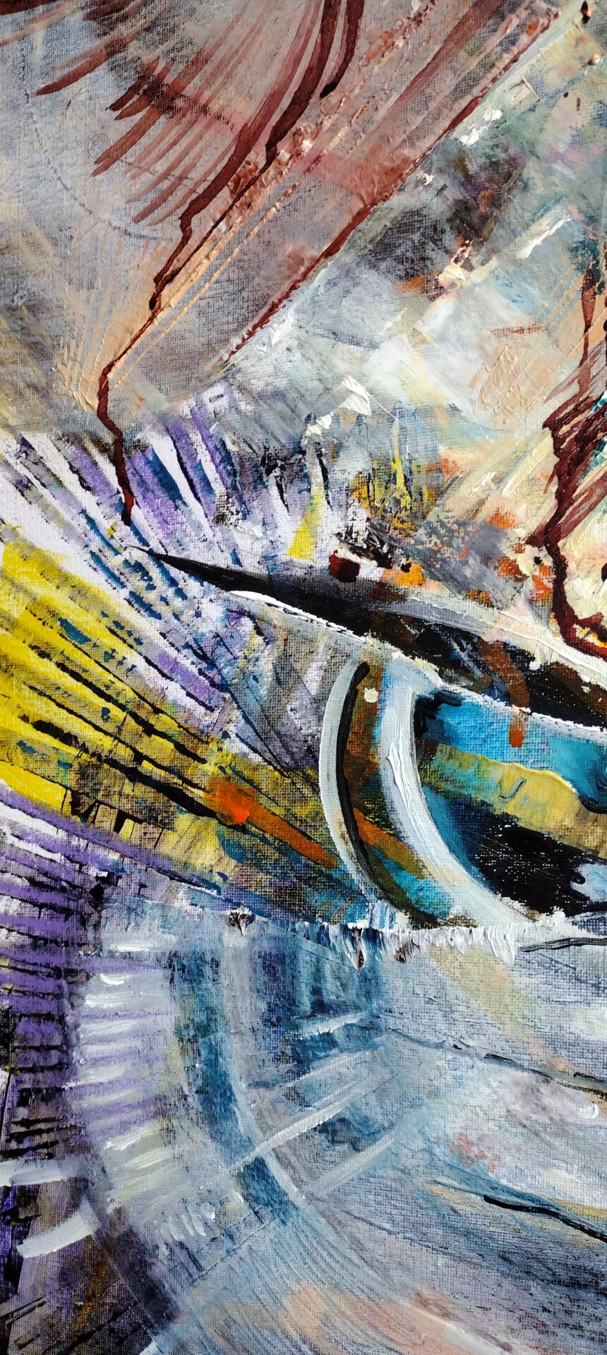 Obraz abstrakcyjny wykonany w technice olejnej na podobraziu płóciennym pt”Okiem ptaka”