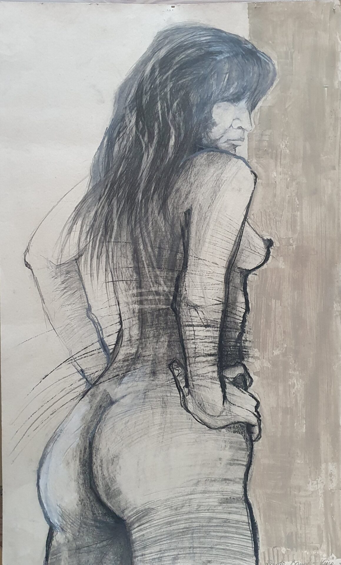 Akt kobiecy na kartonie, technika mieszana/ołówek, węgiel,akryl, szkic postaci,praca bez passe- partout