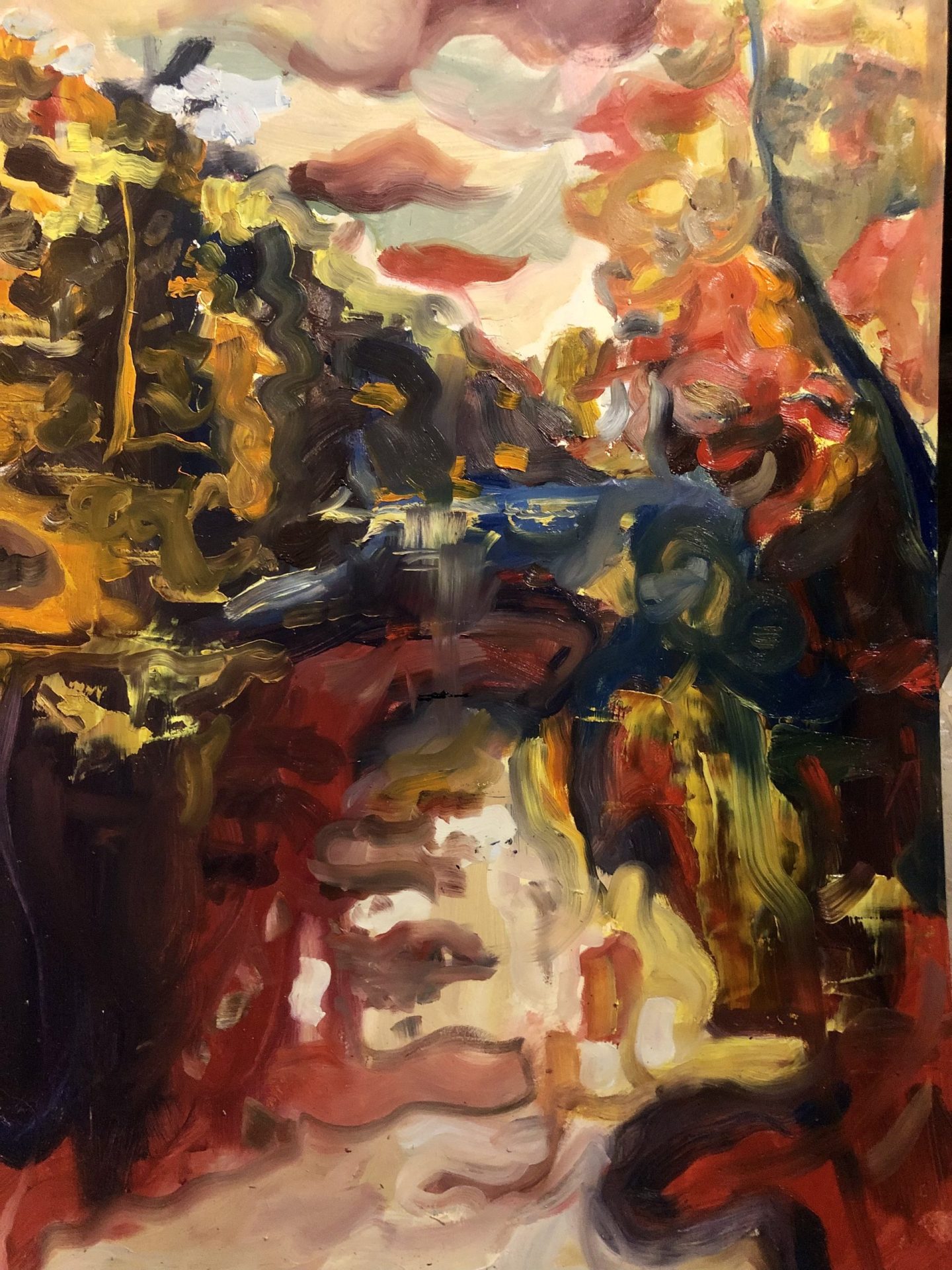 Olej na płycie pilśniowej.