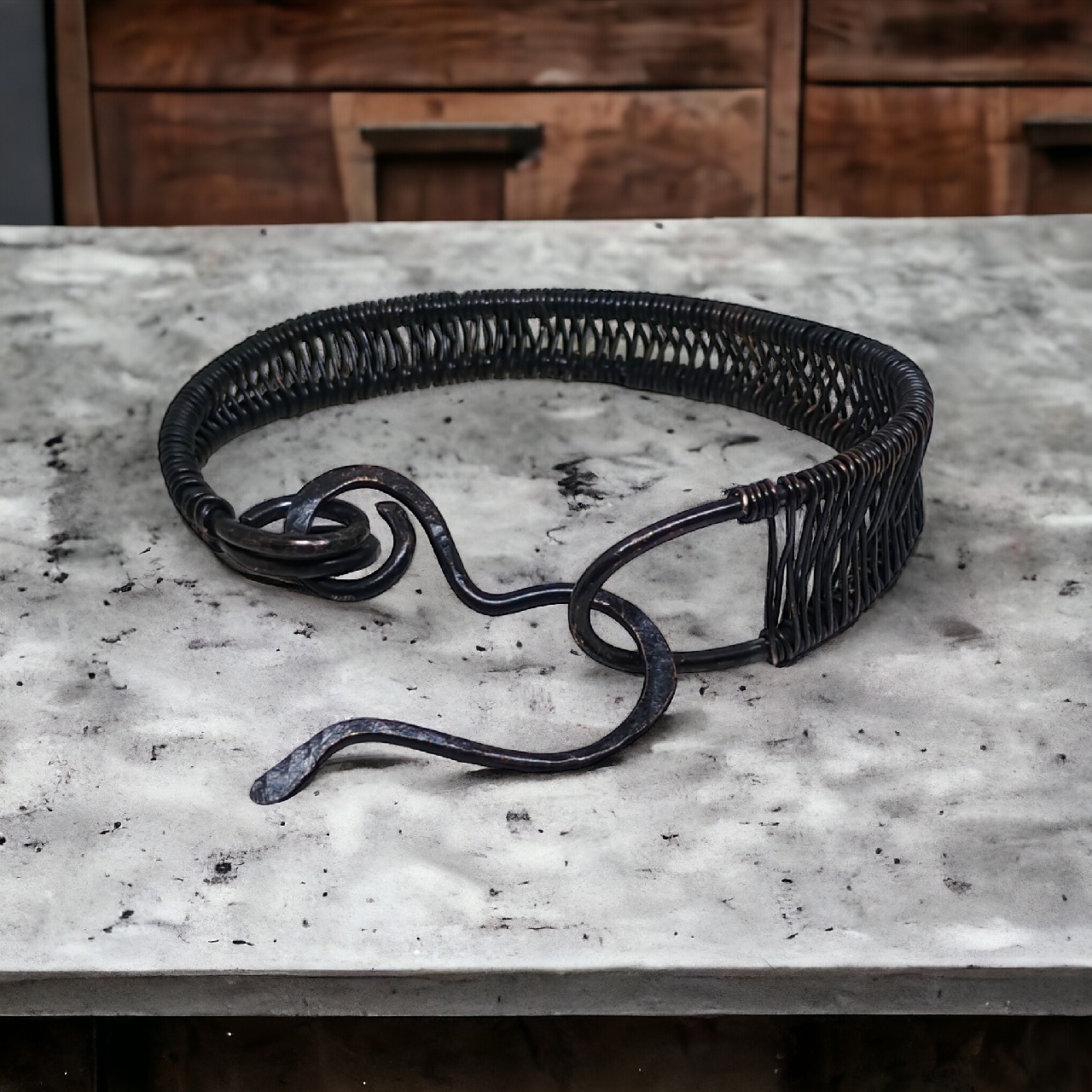Bransoletka została pokryta oksydą w celu nadania efektu patyny i wypolerowana.