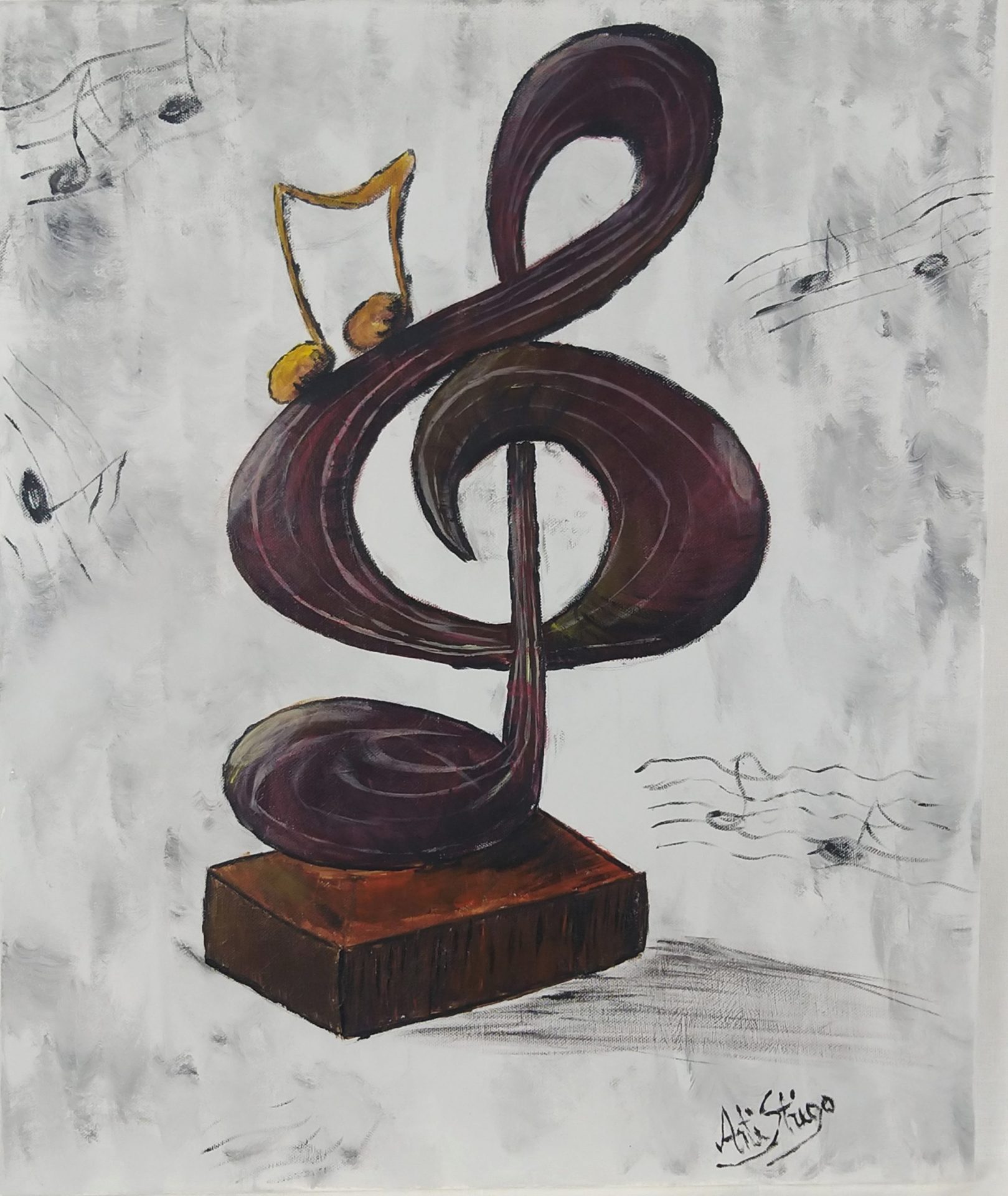 Akrylowy obraz na płótnie. Przedstawia miłość do muzyki, jej wielkość nad światem.