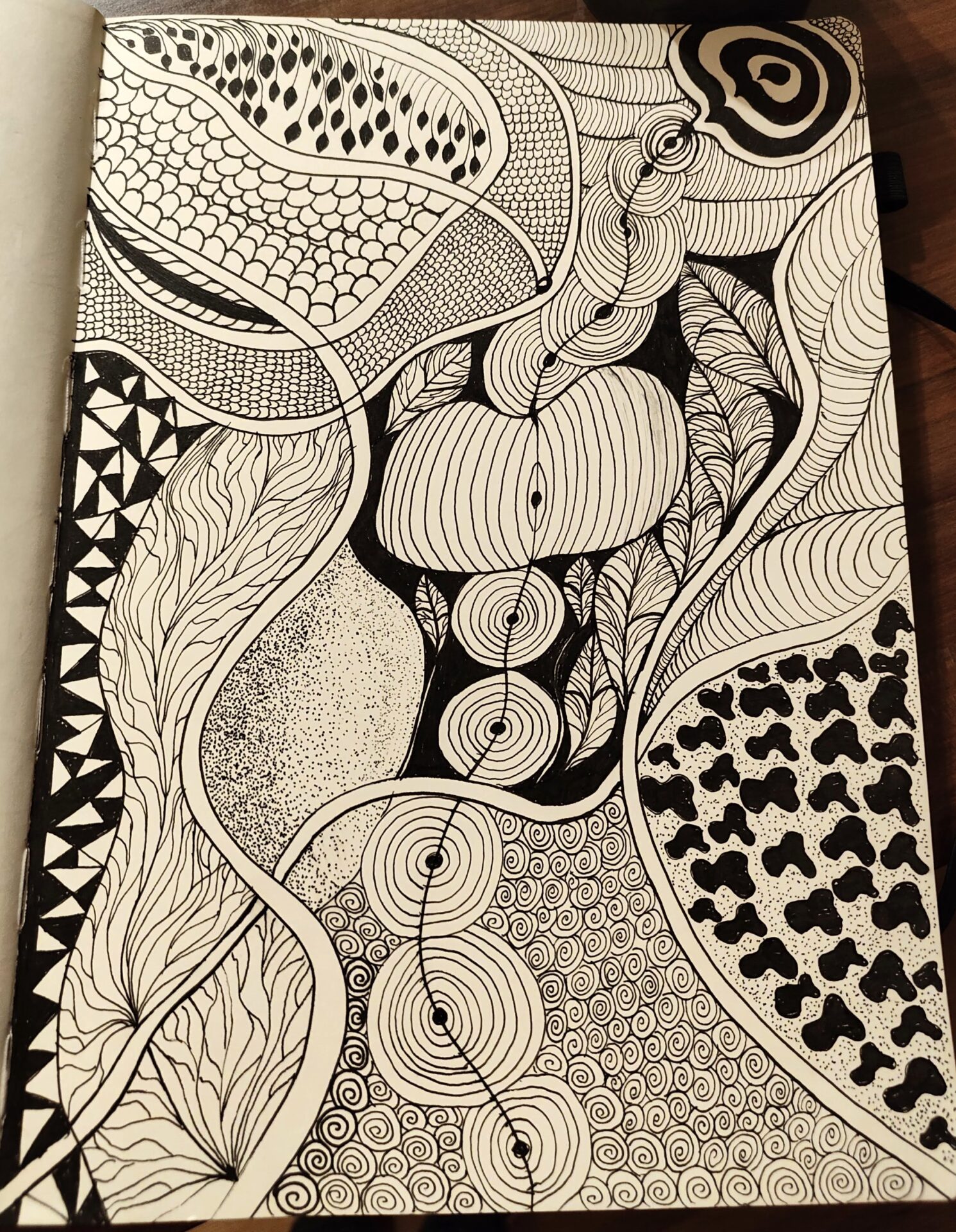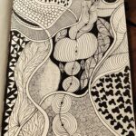 Grafika na zdjęciu wykonana została metodą Zentangle – czarny cienkopis grubość 0,1 na papierze w odcieniu ivory – w formacie A4. Dla chętnych oprawię w cienką ramkę (kolor biały, drewna oraz czarny) + 10 zł.