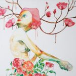 „Otwieram wspomnienie” Obraz ukazuje nagą kobietę, której ciało okalają róże. Myśli cofają się do tamtego zdarzenia. Kiedy chciała go zobaczyć, zamykała oczy. Kiedy chciała go poczuć, otwierała wspomnienie ostatniego razu, gdy dotknął jej zmysłów. Kolorystyka ma oddawać atmosferę miłych skojarzeń, jakie przeszłość wywarła na naszą bohaterkę. Lecz zamknięta w minionych zdarzeniach nie patrzy naprzód, w przyszłość, lecz topi się we wspomnieniach woni jego skóry – bo tylko tak doprowadza się do błogostanu. Technika: akwarela na płótnie, wymiary:50cmx60cm , rok:2018,