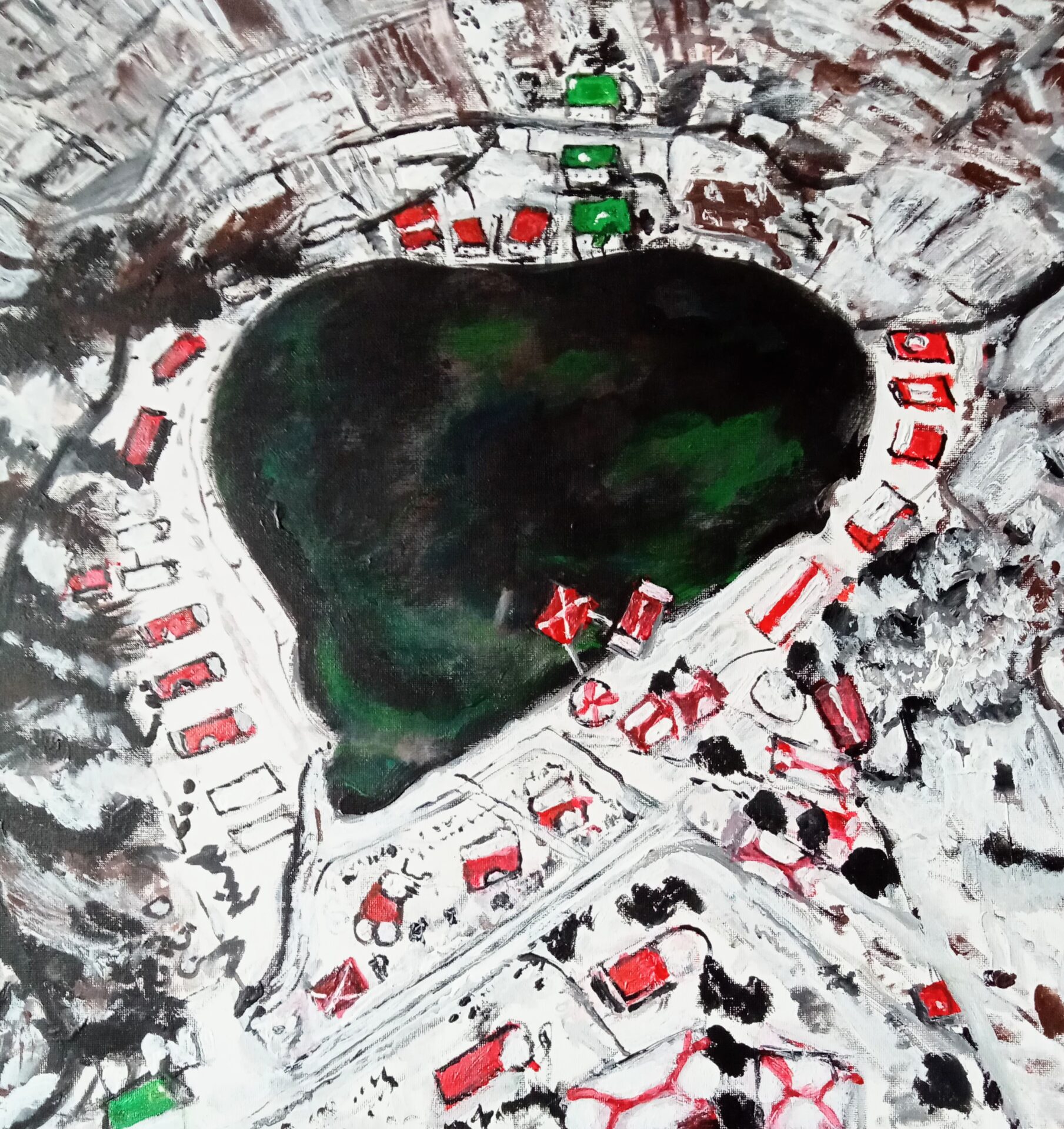 Obraz ręcznie malowany na płótnie naciągniętym na sosnowy blejtram.