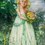 Poniżej nalepka: DUDA GRACZ | TYTUŁ Obraz 2117 (ŁAGÓW | PANNA KWIECISTA) | TECHNIKA olej | WYMIARY 138 x 80 ROK 1997