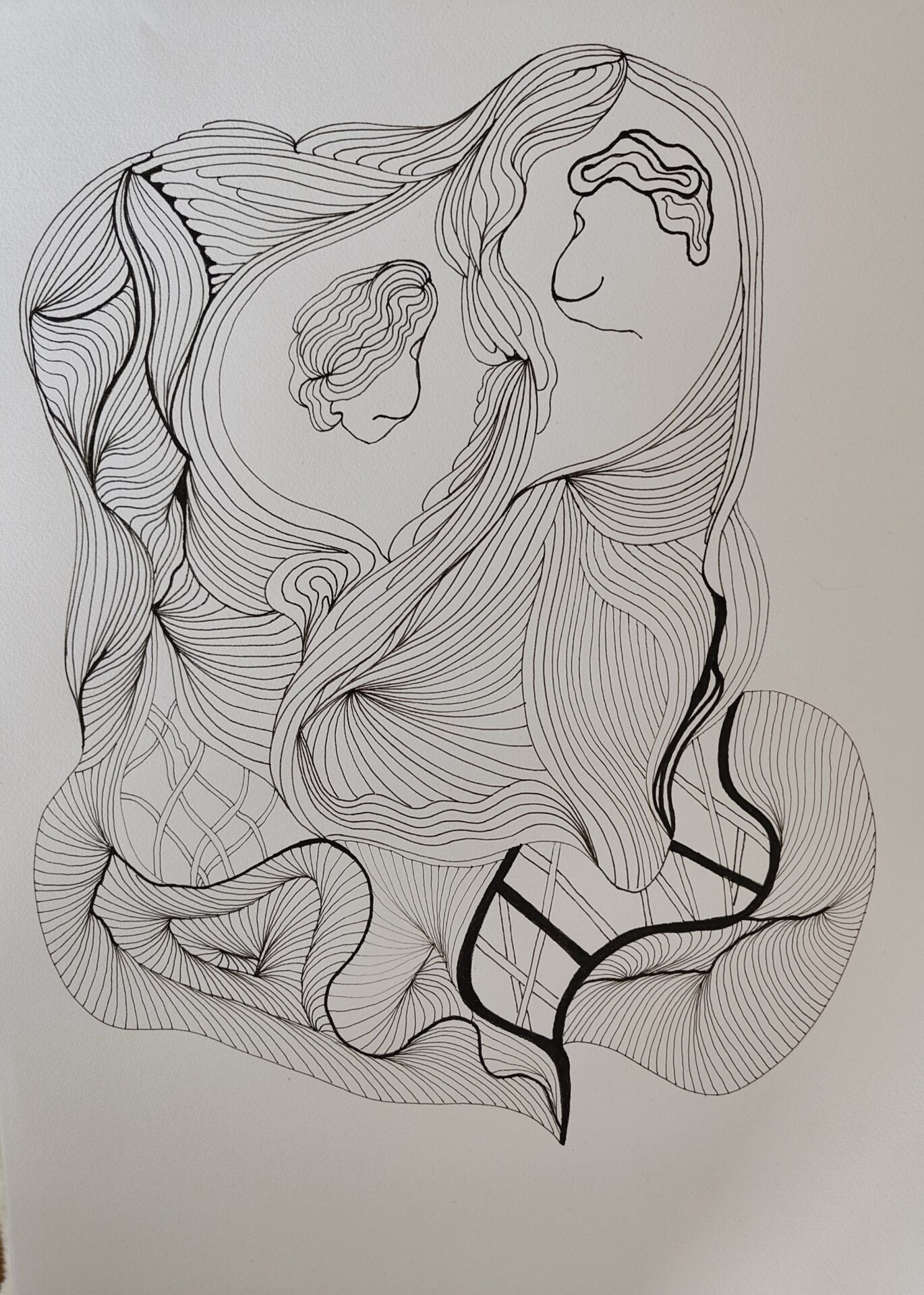 Format A3. Rysunek wykonany czarnymi cienkopisami gr 0,01-0,8. Papier biały. Praca intuicyjna, bez planu. Polecam inne moje grafiki.