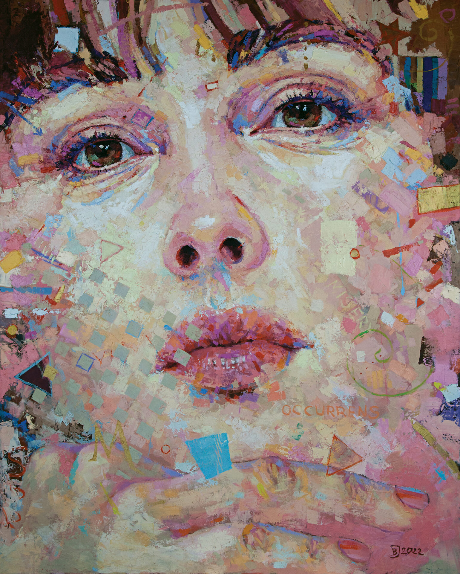 Postimpresjonistyczny portret inspirowany wizerunkiem aktorki Moniki Belucci. Jak zwykle w moich obrazach pełno tu zagadek, rebusów i symboli.