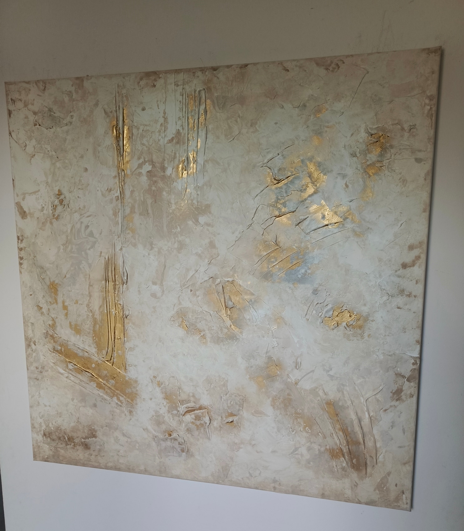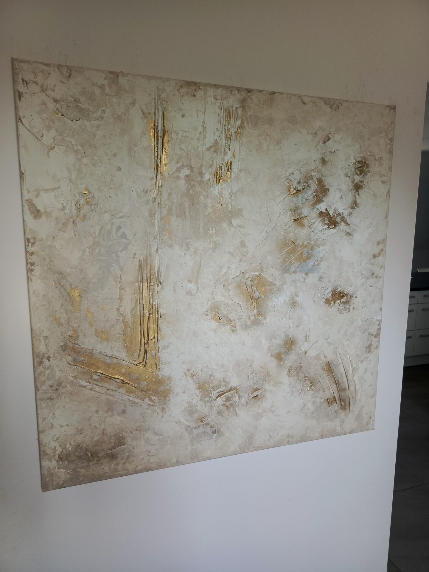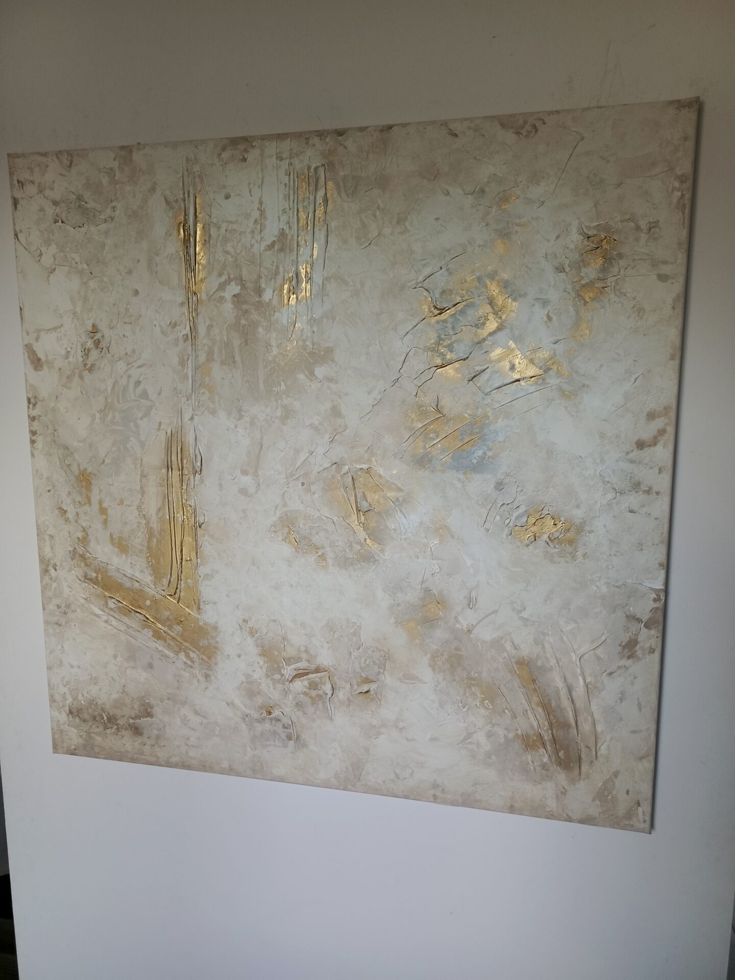 Obraz abstrakcyjny malowany na płótnie o wymiarach 100/100. Wyraźna struktura, malowany farbami akrylowymi przy zastosowaniu różnych metod malarskich.