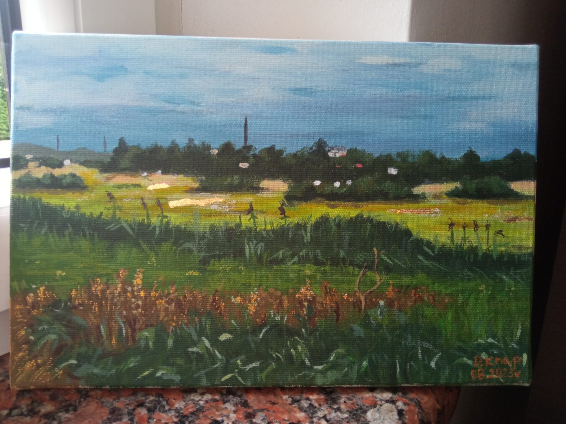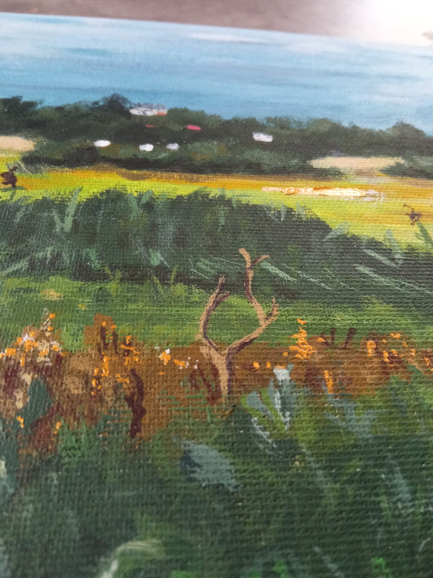 Akryl z dodatkiem złota ,dałam też złota farbkę,malowanie natury daje ogromną satysfakcję