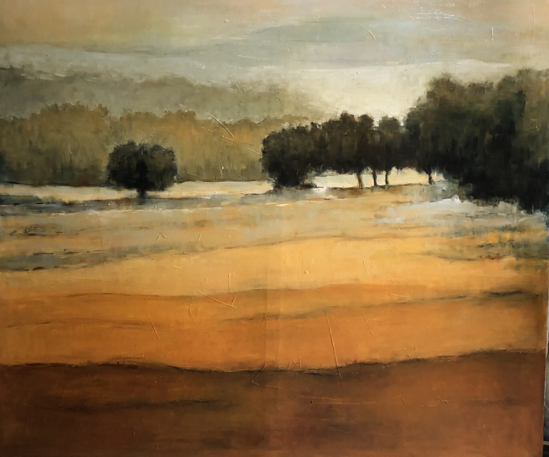 Olej na płótnie inspirowany pięknem przyrody – pejzaż w tonacji pomarańczowej