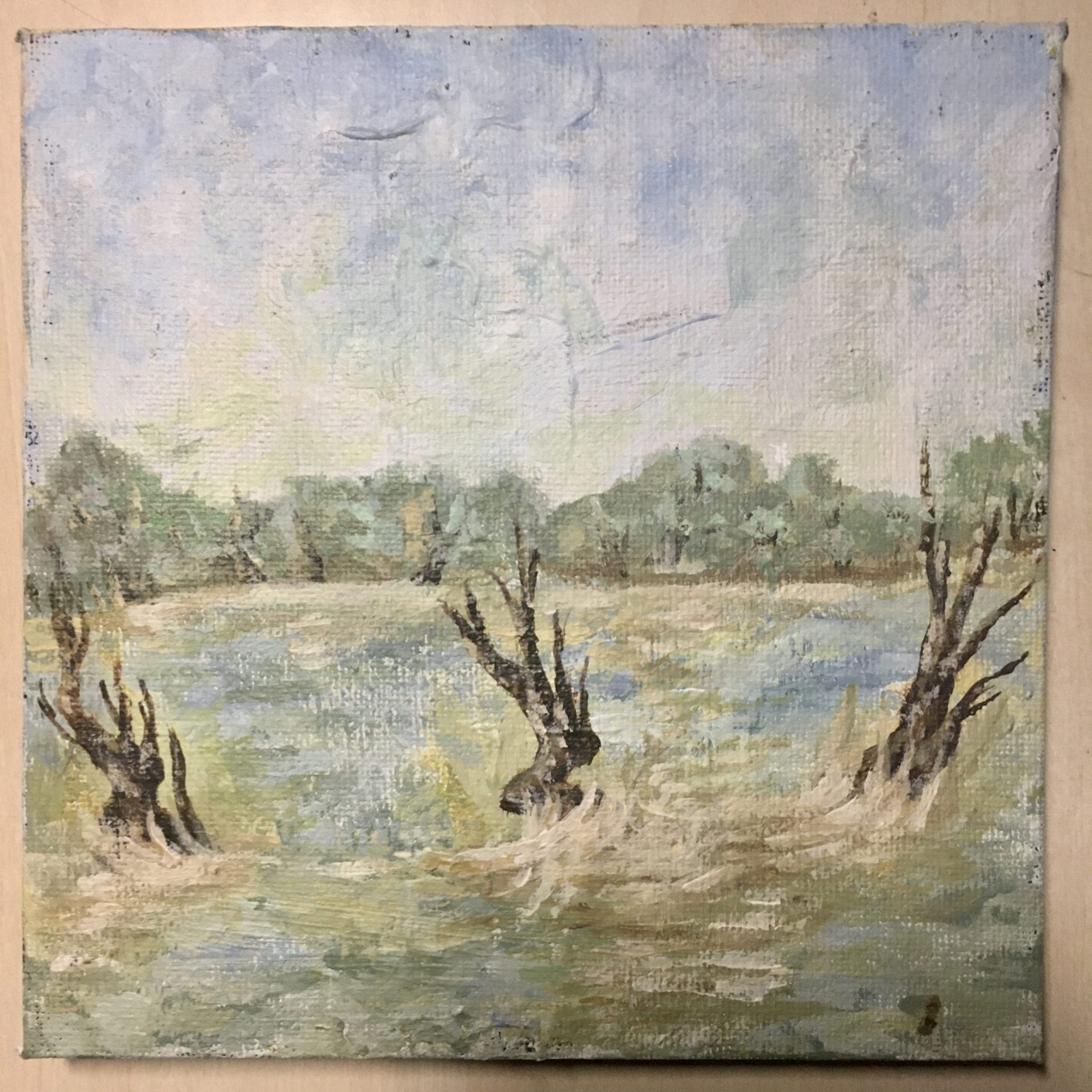 Dzień dobry, namalowałam ten obraz akrylami na płótnie w celu uwiecznienia piękna wczesnowiosennego krajobrazu i budzącej się do życia przyrody, serdecznie zachęcam do zakupu 😉