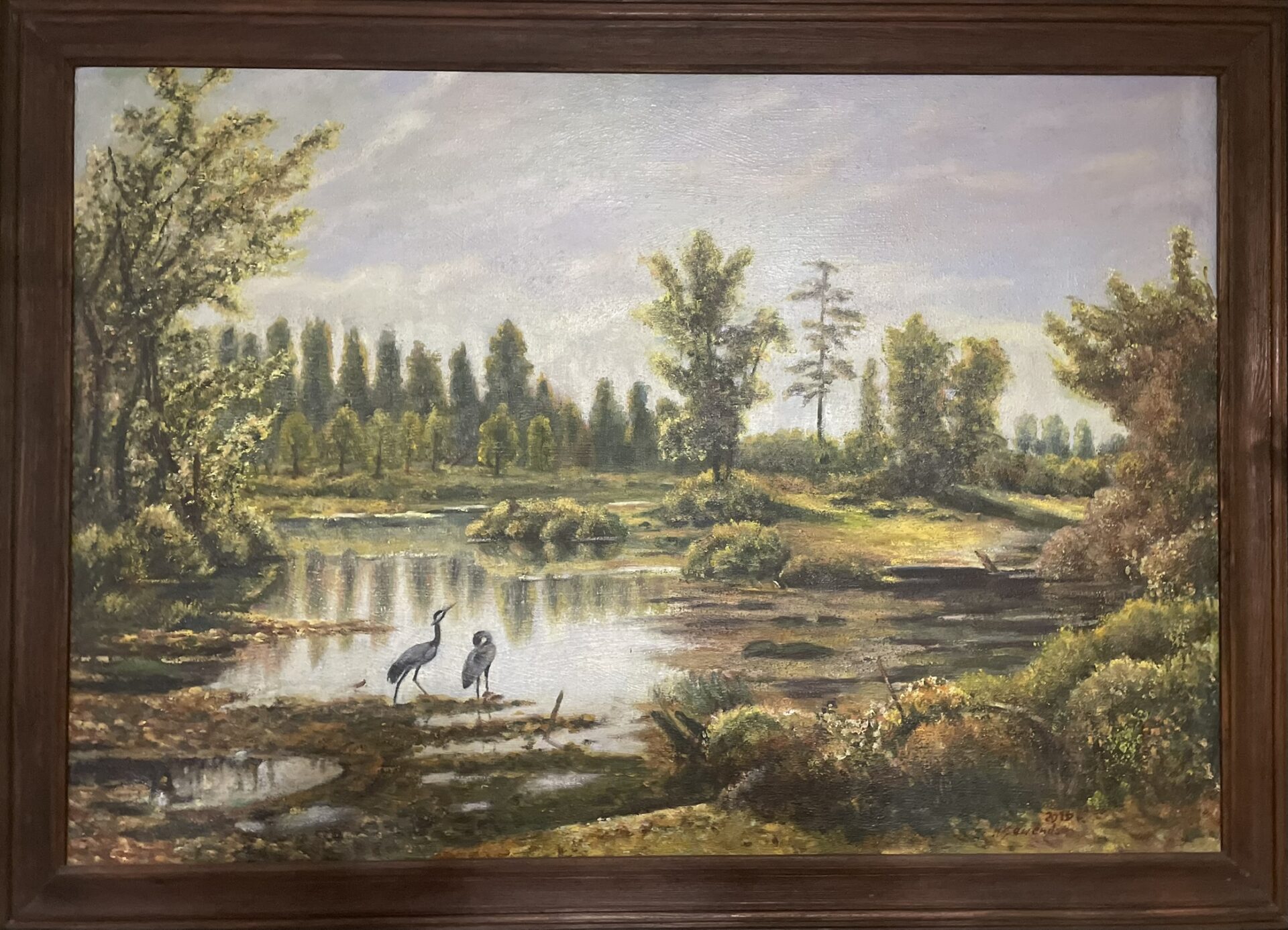 Olej na płótnie. Rama drewniana, szeroka żłobiona. Kolorystyka obrazu stonowana.