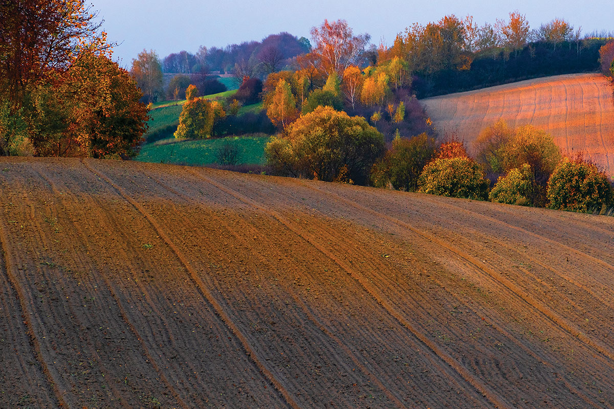 Zachodzące jesienne słońce zabarwia wszystko ciepłym światłem