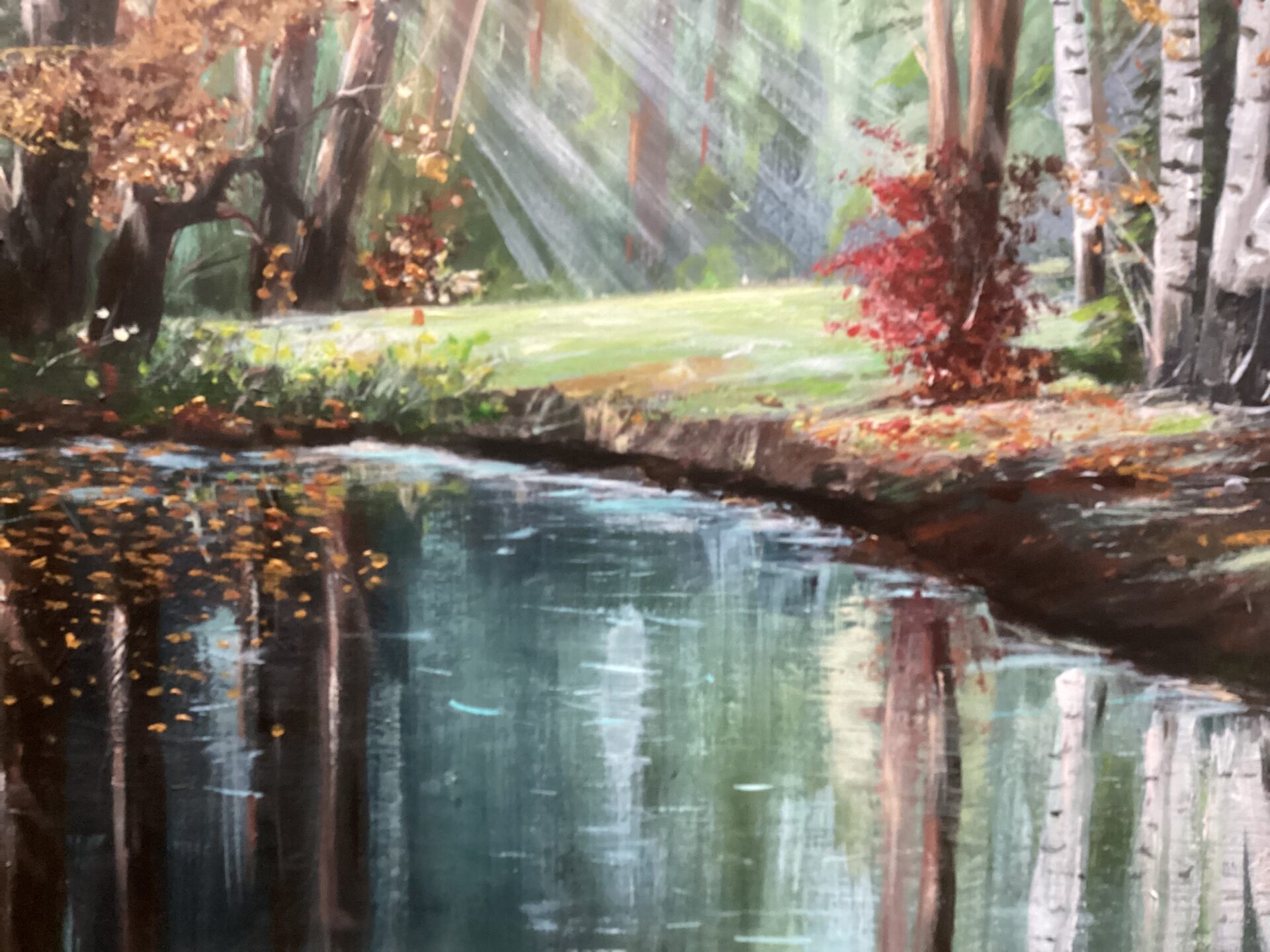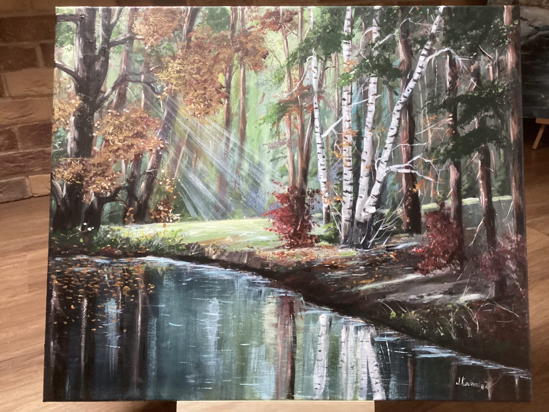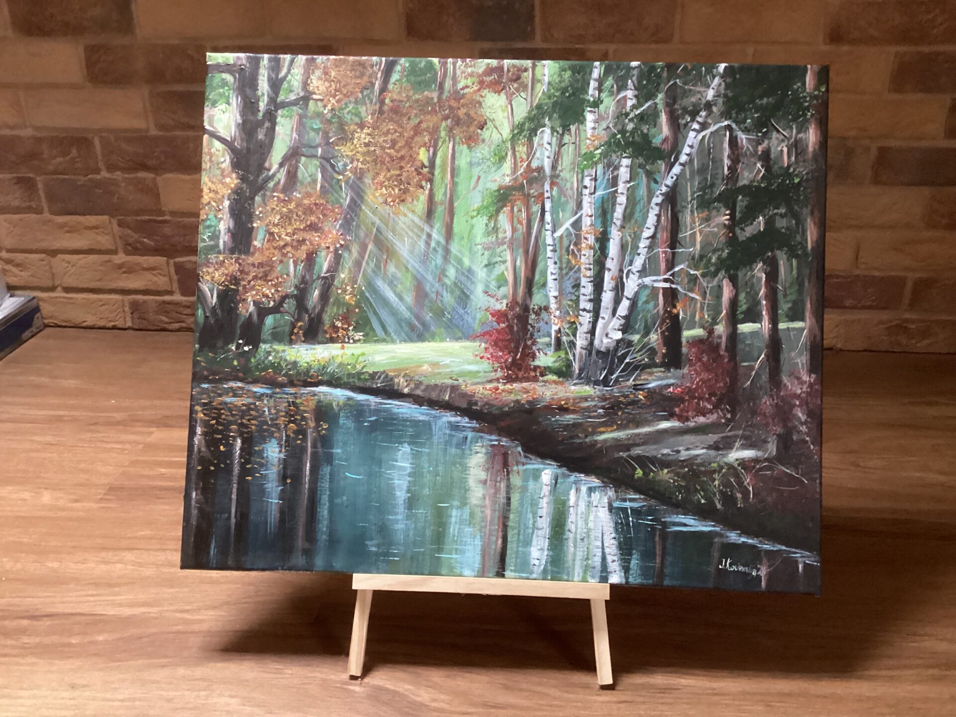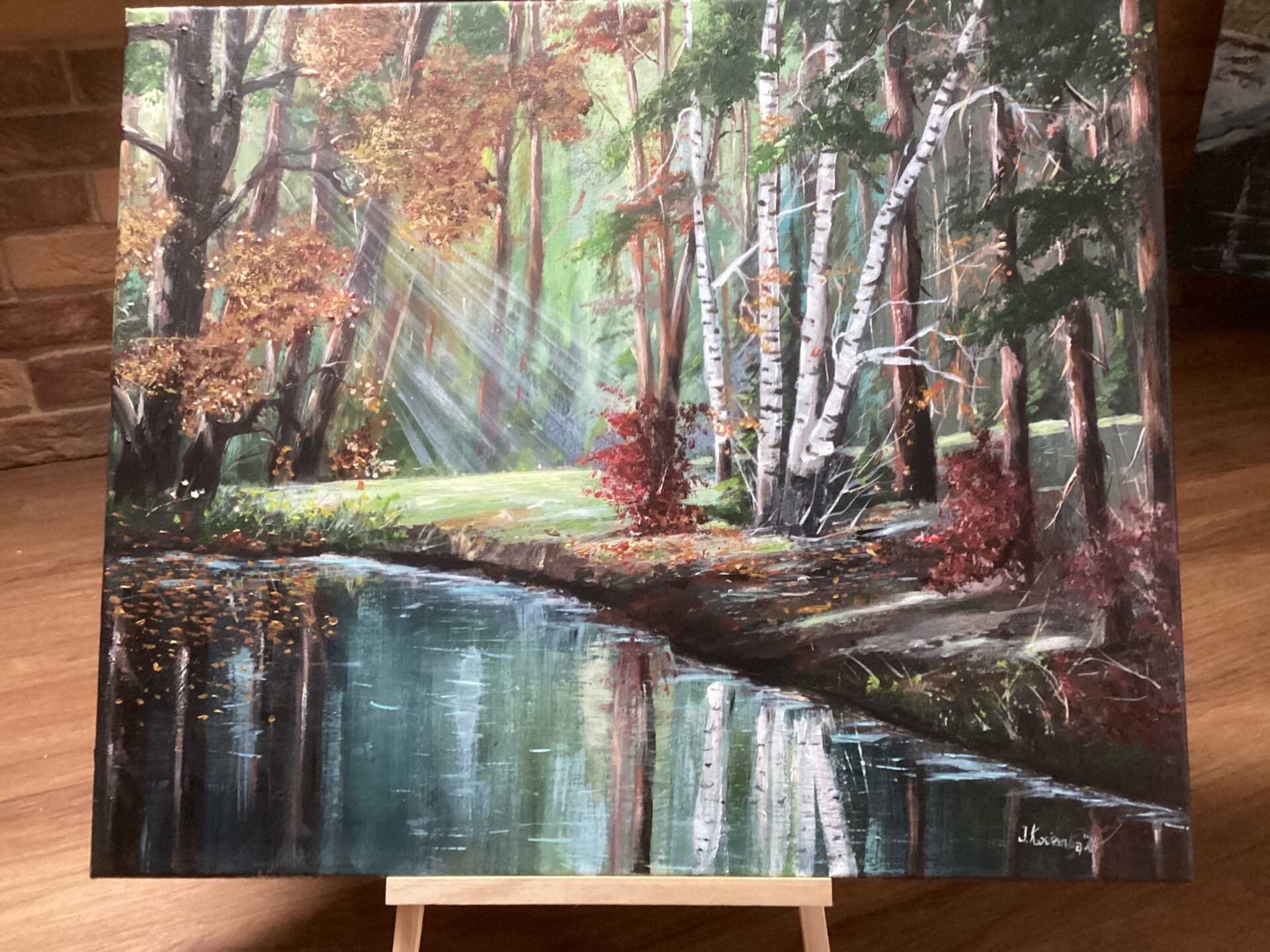 Utrzymana w ciepłych barwach praca , z serii pejzaży jesiennych. Obraz jest nieoprawiony, z tyłu zawieszka umożliwia zawieszenie, a boki kolorystycznie nawiązują do obrazu. Wykończenie werniks satynowy. W koszt wliczona jest przesyłka do paczkomatu. Inne formy przesylki : za dopłatą. Możliwy odbiór osobisty.