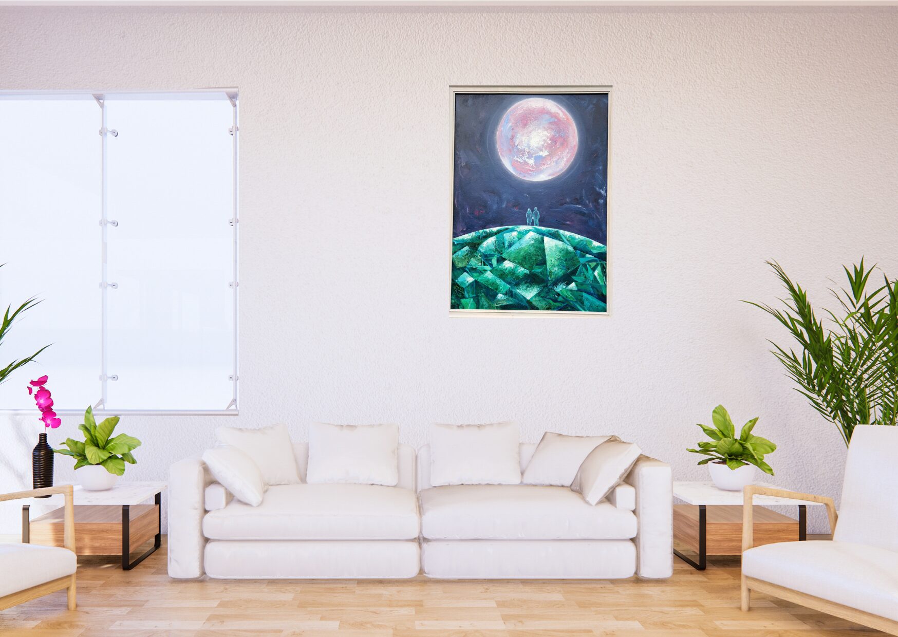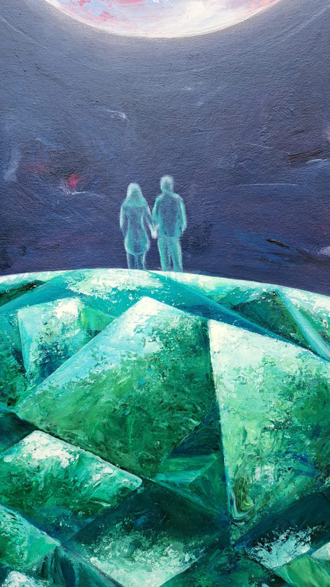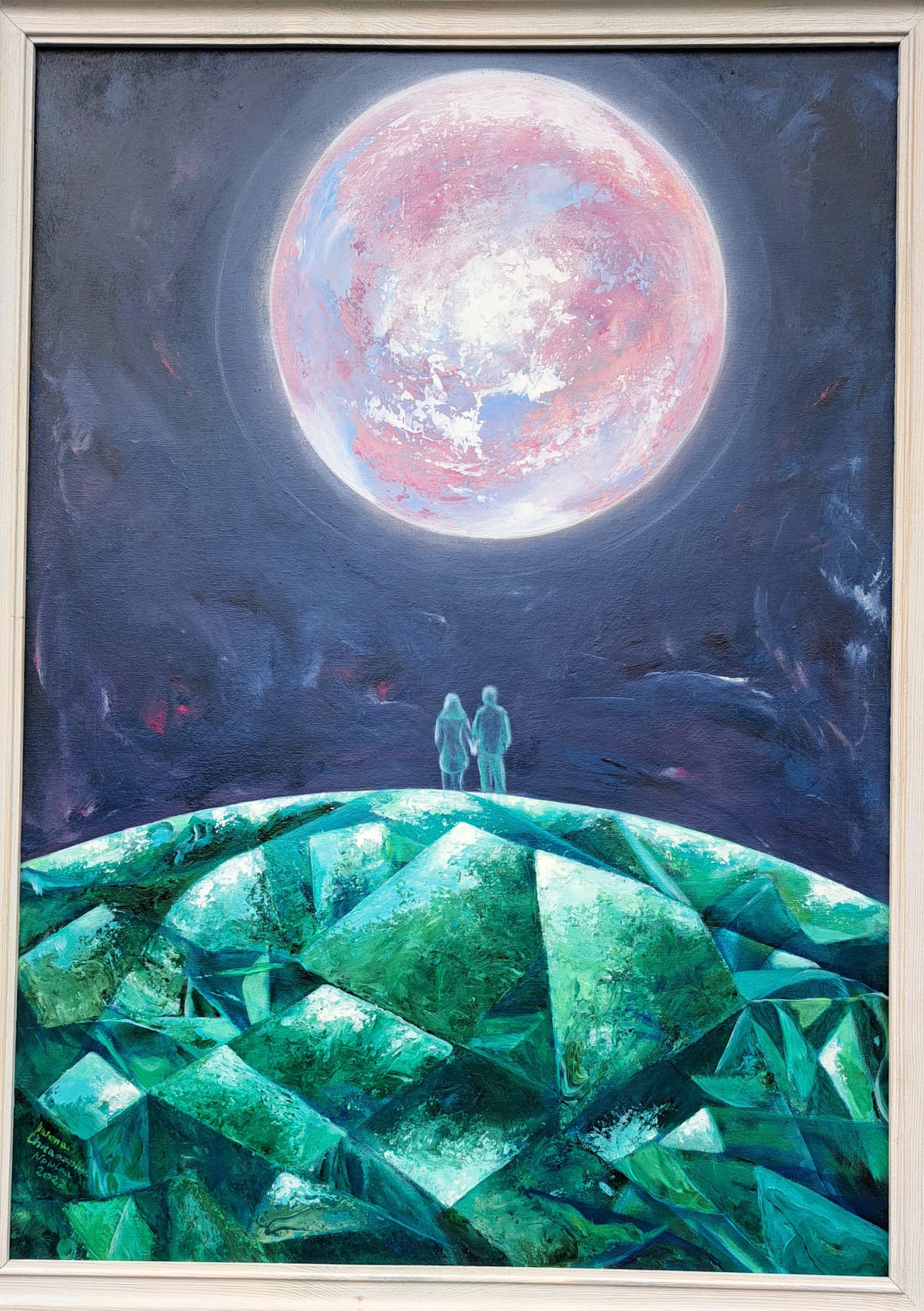 Unikalny, autorski obraz wg własnego pomysłu namalowany farbami akrylowymi na płótnie. Zdjęcie zrobiono w ramce, ale boki są zamalowane i może być bez ramy. Używałam pędzli i szpachelki, stąd nierówna powierzchnia. Zabezpieczony werniksem z połyskiem.