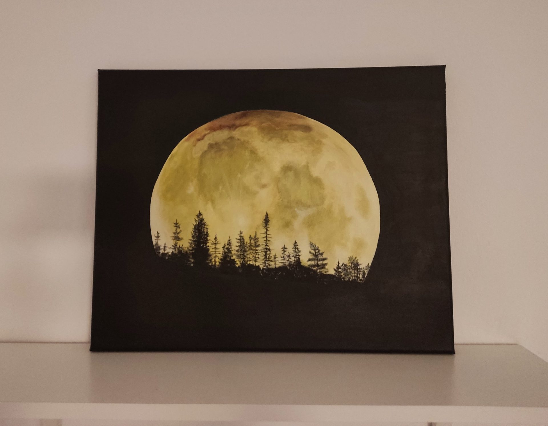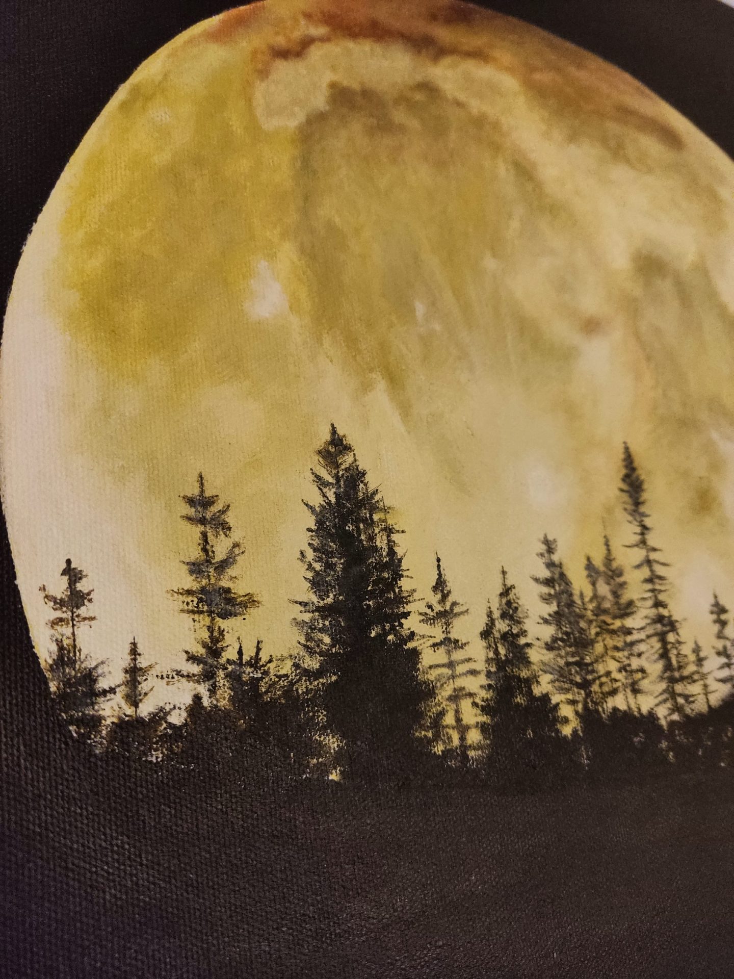 Obraz namalowany farbami akrylowymi firmy Golden, na bawełnianym płótnie. Boki zamalowane, całość pokryta werniksem.