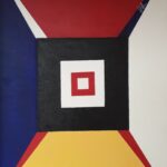 Obraz Doroty Ratajczak. Tym razem bardzo geometryczny. Prosty, a zarazem trudny. Wymagajacy ogromnej prezycji. Jest namalowny akrylem na płótnie. Nieoprawiony. Boki pomalowane w kolorze białym.