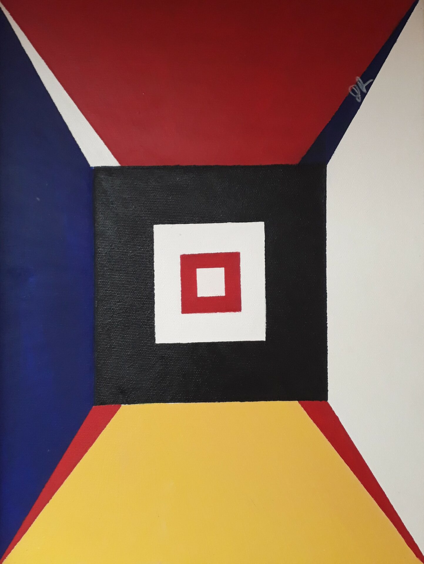 Obraz Doroty Ratajczak. Tym razem bardzo geometryczny. Prosty, a zarazem trudny. Wymagajacy ogromnej prezycji. Jest namalowny akrylem na płótnie. Nieoprawiony. Boki pomalowane w kolorze białym.