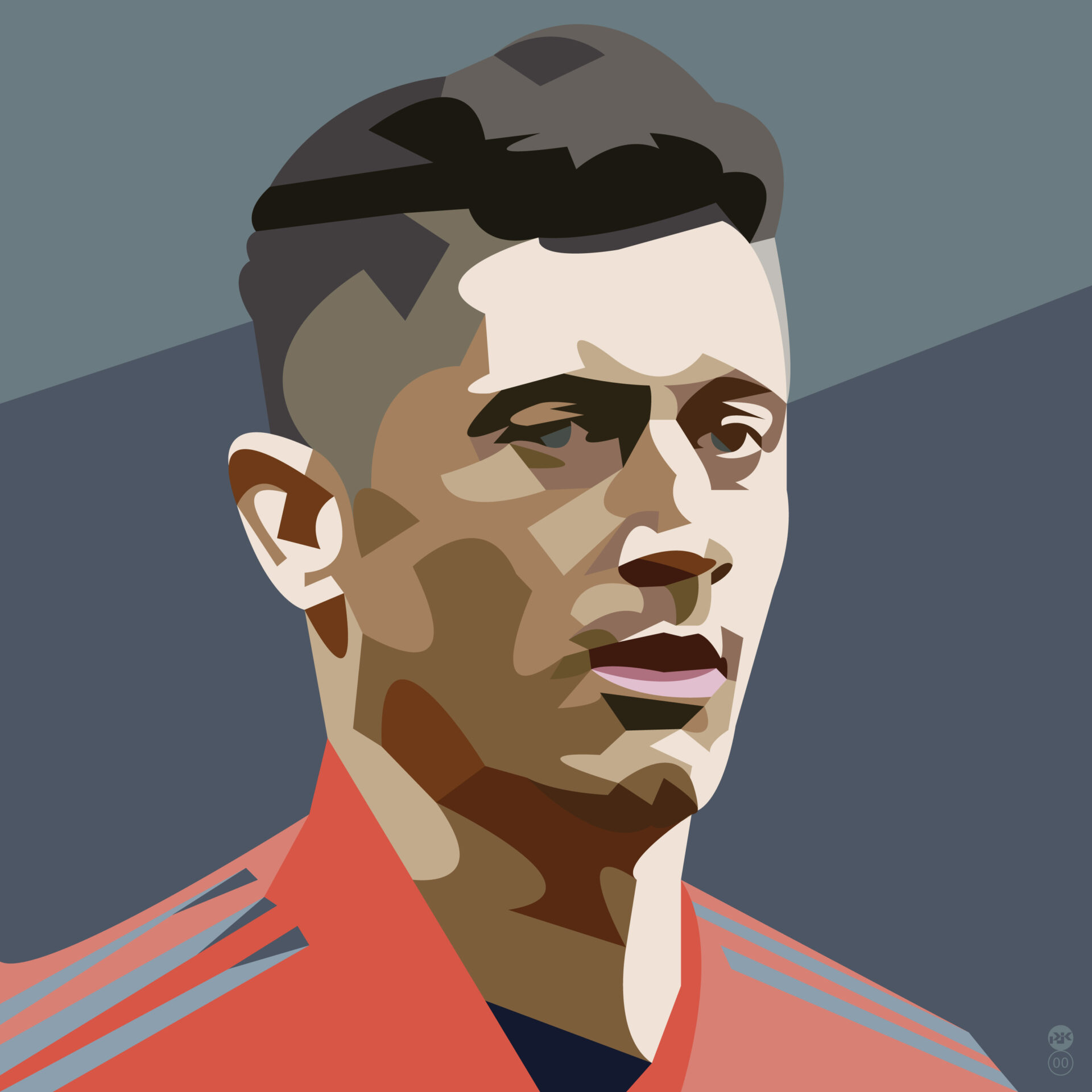 Portret minimalistyczny w formie i gamie kolorów, balansujący na granicy abstrakcji i geometrii. Wydruki Giclee są to najwyższej jakości reprodukcje dzieł sztuki, których wygląd, dzięki zastosowaniu najwyższej jakości materiałów (podłoża, atramenty) i urządzeń drukujących ( plamka jest praktycznie niezauważalna gołym okiem), jest prawie nieodróżnialny od oryginału. Dla grafiki cyfrowej są rzeczywistymi, nieekranowymi oryginałami. Profesjonalne wydruki typu Giclee mogą być nawet ponad 100 lat eksponowane wewnątrz pomieszczeń bez widocznej zmiany koloru. Są one wykonywane w limitowanym nakładzie 50 sztuk, numerowane a następnie własnoręcznie sygnowane przez artystę.