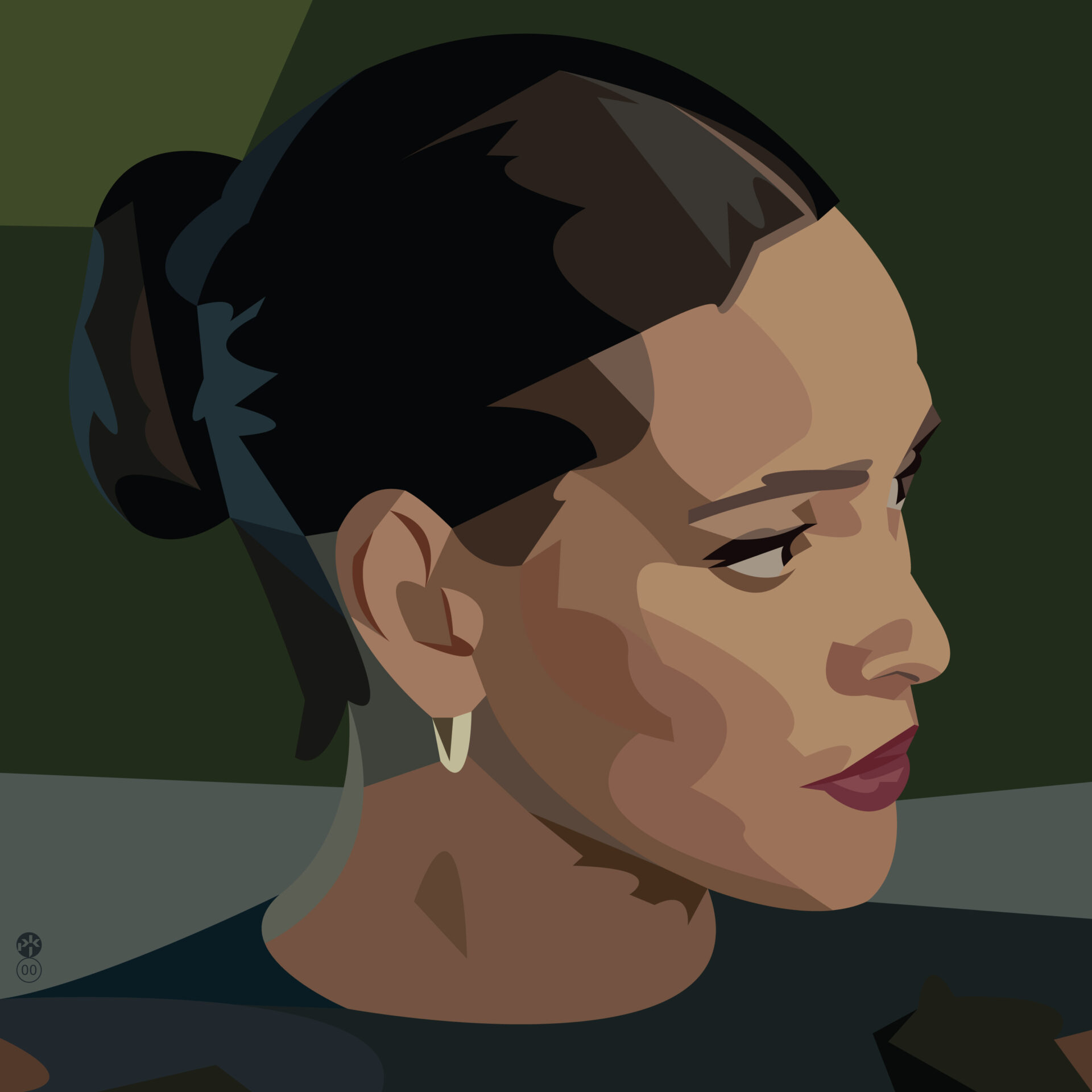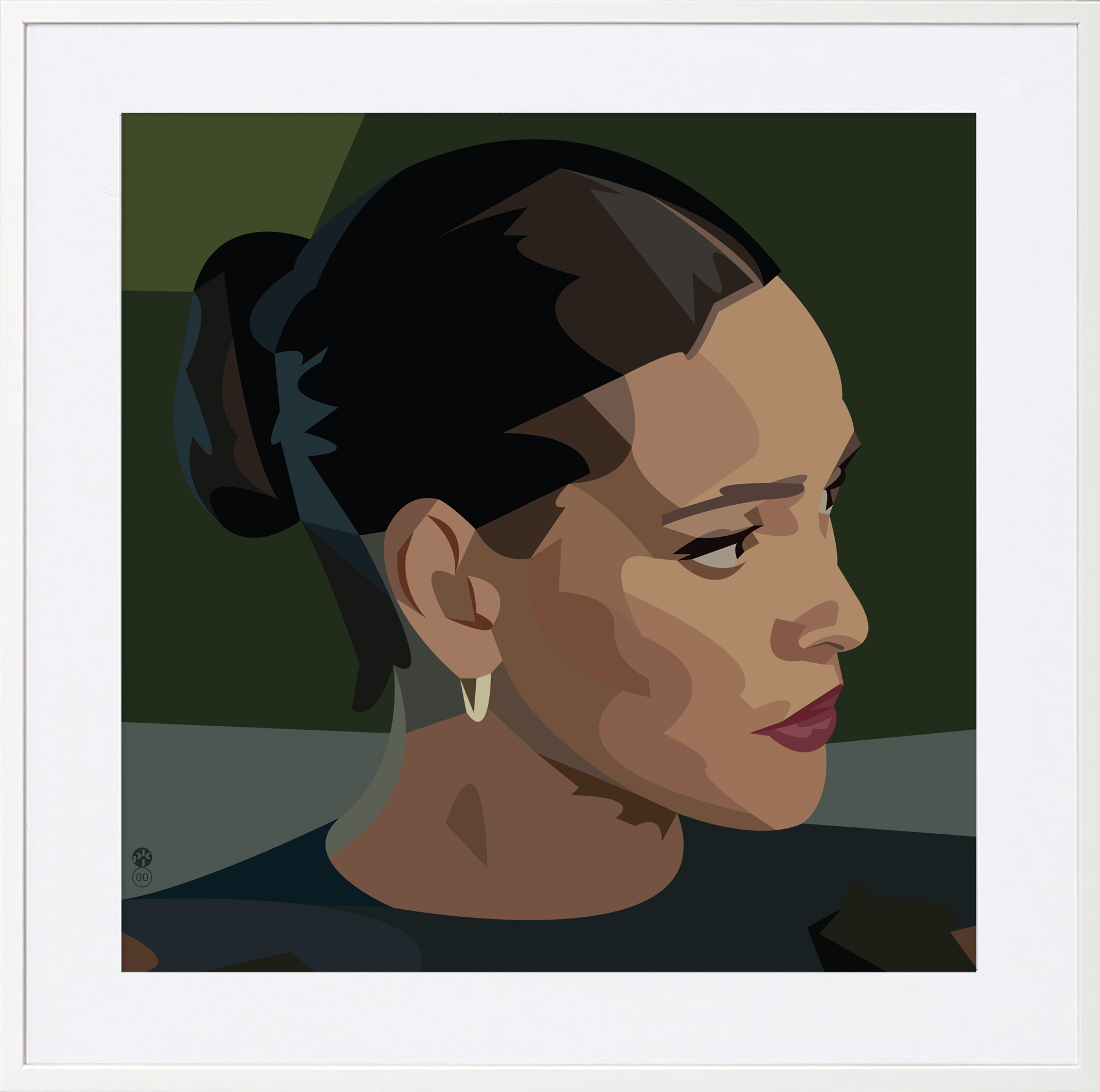 Portret minimalistyczny w formie i gamie kolorów, balansujący na granicy abstrakcji i geometrii. Wydruki Giclee są to najwyższej jakości reprodukcje dzieł sztuki, których wygląd, dzięki zastosowaniu najwyższej jakości materiałów (podłoża, atramenty) i urządzeń drukujących ( plamka jest praktycznie niezauważalna gołym okiem), jest prawie nieodróżnialny od oryginału. Dla grafiki cyfrowej są rzeczywistymi, nieekranowymi oryginałami. Profesjonalne wydruki typu Giclee mogą być nawet ponad 100 lat eksponowane wewnątrz pomieszczeń bez widocznej zmiany koloru. Są one wykonywane w limitowanym nakładzie 50 sztuk, numerowane a następnie własnoręcznie sygnowane przez artystę.