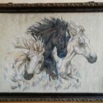 Cudowne galopujące konie wykonane techniką haftu krzyżykowego. Haft na calej powierzchni obrazu. Wymiar bez ramy 63×47. Rama do renowacji lub wymiany. W razie zainteresowania proszę o kontakt email (Annagurel2018@gmail.com). Pozdrawiam Panstwa serdecznie.