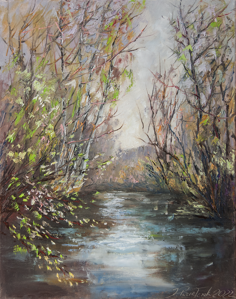 Obraz olejny na podobraziu płóciennym z widoczną fakturą farby
