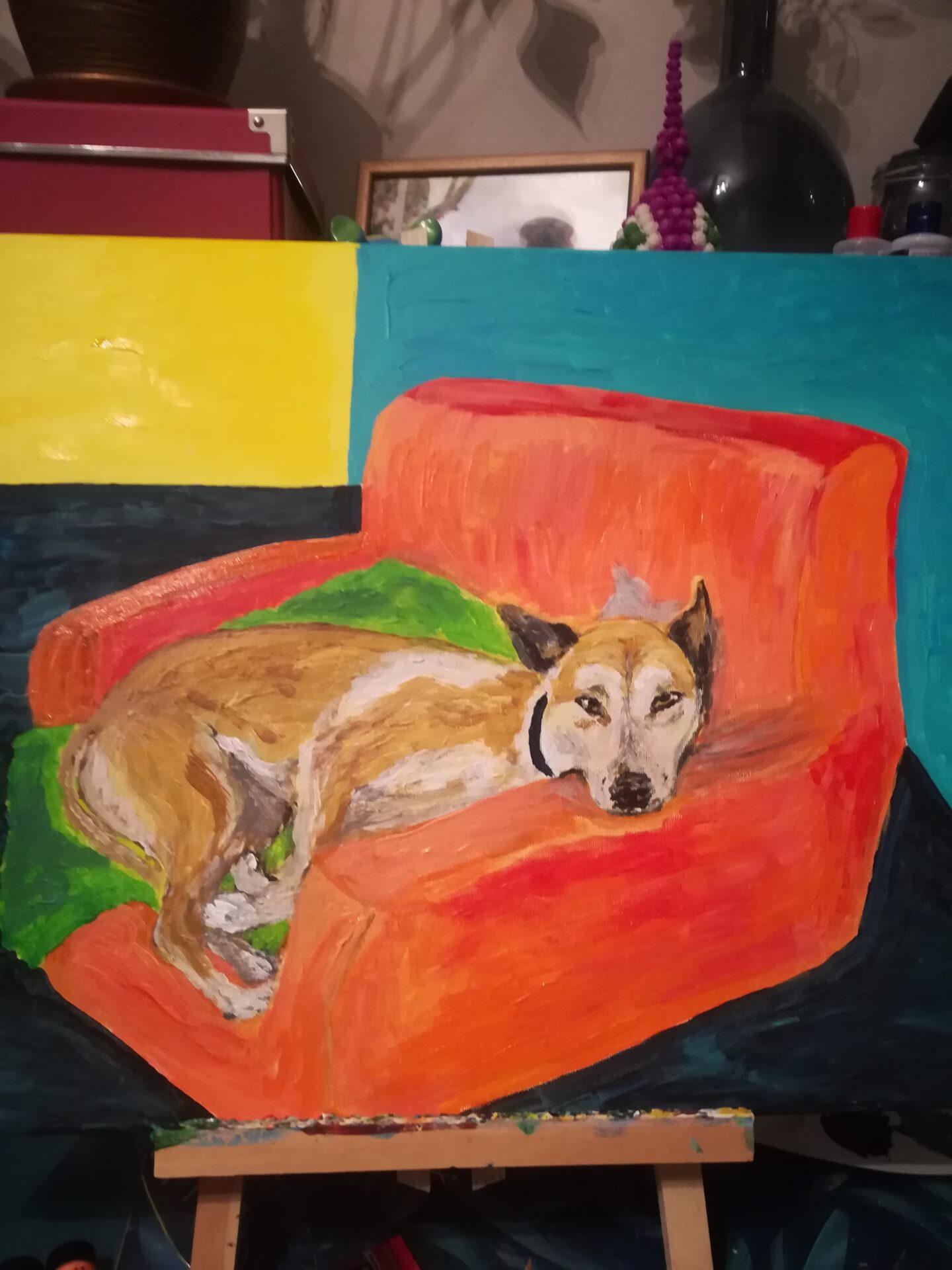 obraz akrylowy , gotowy do powieszenia (zamalowane boki), pies nazywa się Czupi , przyjechał z Tajlandii
