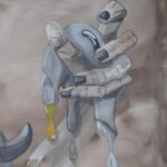 Każdy mój obraz ma unikalną, niepowtarzalną tematykę i jest jedyny w swoim rodzaju. Obraz w nurcie surrealizmu/symbolizmu. Pasuje do wnętrz nowoczesnych oraz typu loft. Kolorystyka stonowana, odcienie, brązów, żółtego.