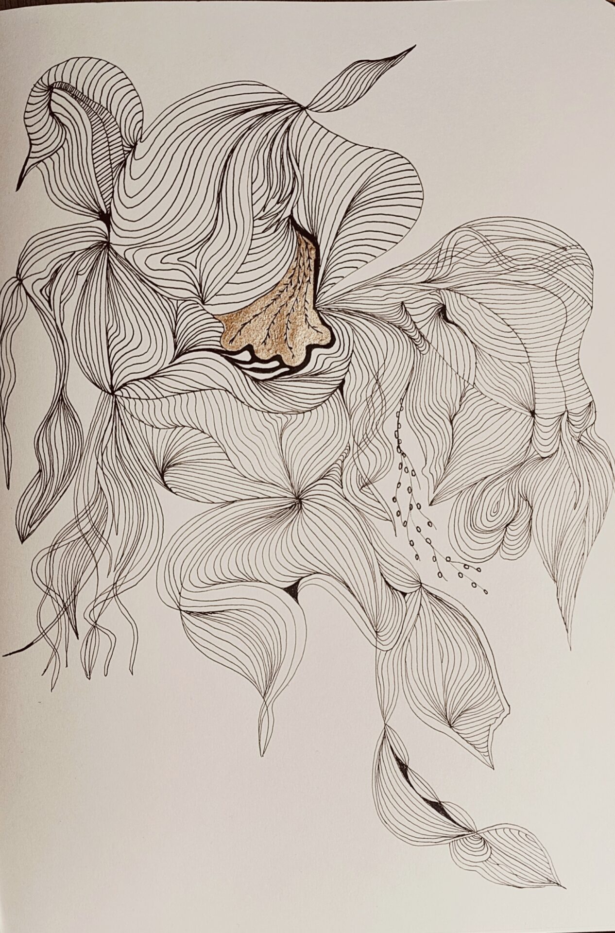 Rysunek wykonany czarnym cienkopisem oraz złotym. Format a4. Papier kolor ivory. Mogę oprawić w ramę na życzenie +15zl Polecam inne moje prace.