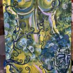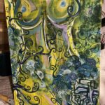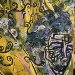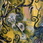 “Plątanina”- obraz tworzyłam przez łącznie, około trzy miesiące. Połączyłam wiele różnych technik oraz tekstur, aby obraz miał swój własny unikalny charakter. Moja sztuka nie ma reguł ani ścisłych teorii, jest w pełni wolna. Tekstura obrazu łączy w sobie spękania, połysk, wypukłości, farbę, marker… Każdy mój obraz powstaje pod wpływem różnych emocji, można to zauważyć na pierwszy rzut oka. Dodatkową ciekawą cechą obrazu są różne kontrasty kolorystyczne.