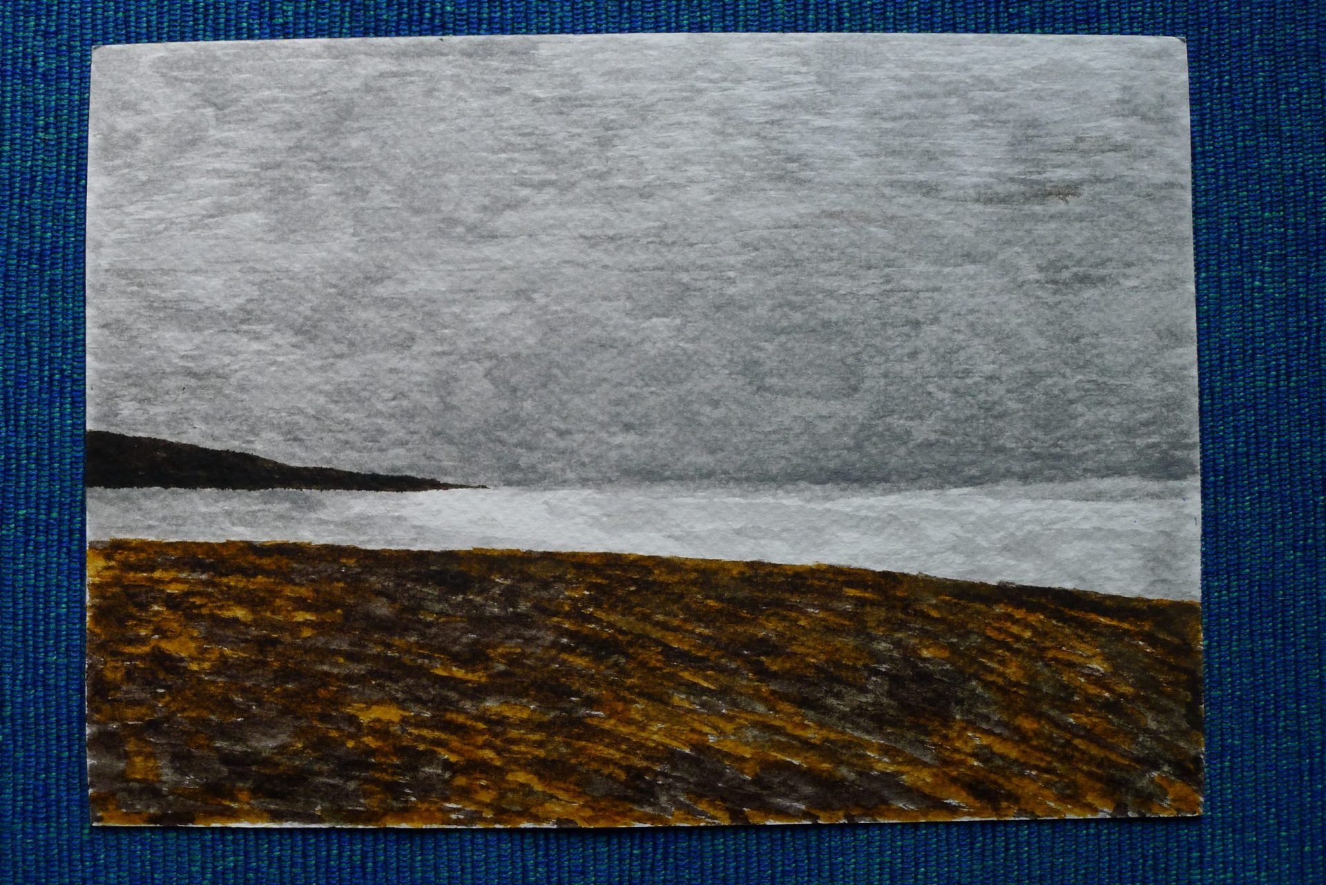 Obrazek wykonany flamastrami pędzelkowymi na plaży w Lubiatowie późnym popołudniem w letni słoneczny dzień, kiedy plażowicze tłumnie opuścili plażę dla smażonego dorsza, frytek i gofrów. Dzięki temu można było skupić się na tym co widać patrząc pod zniżające się słońce.