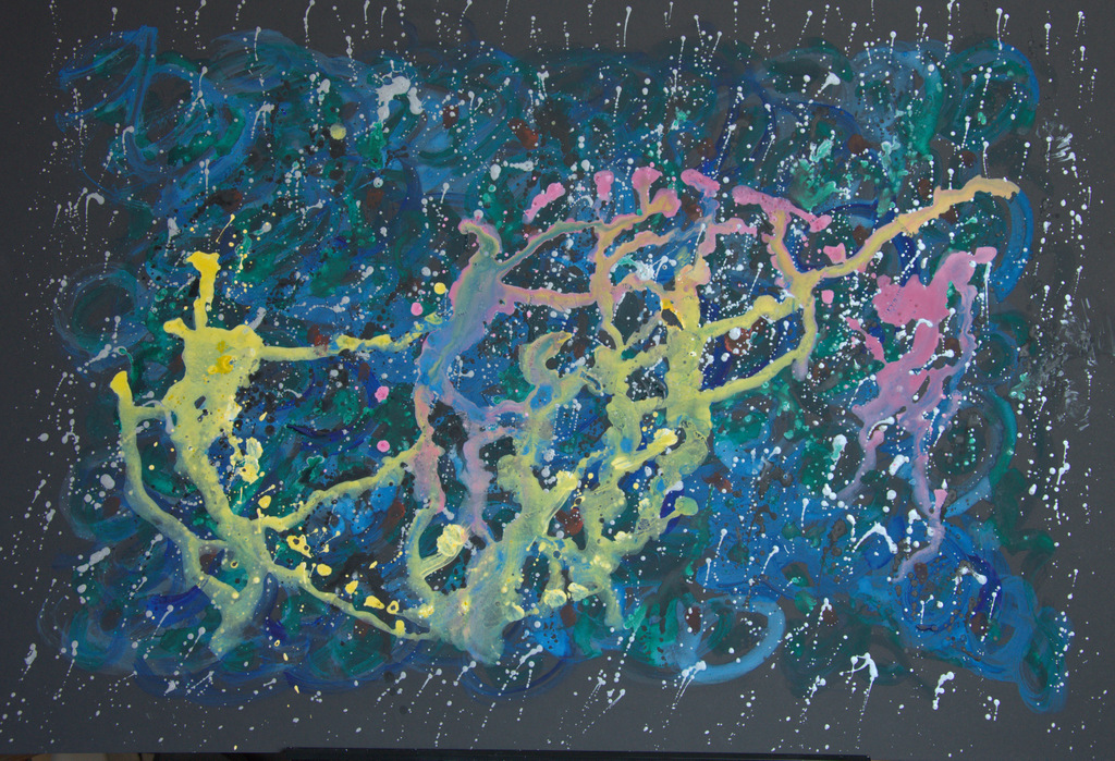 Płyń i baw się.. Obraz malowany akrylami na piance 5 mm i oprawiony w antyramę 100 x 70 cm