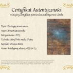 Do obrazu, dołączony zostanie Certyfikat z podpisem autora, potwierdzający autentyczność dzieła.