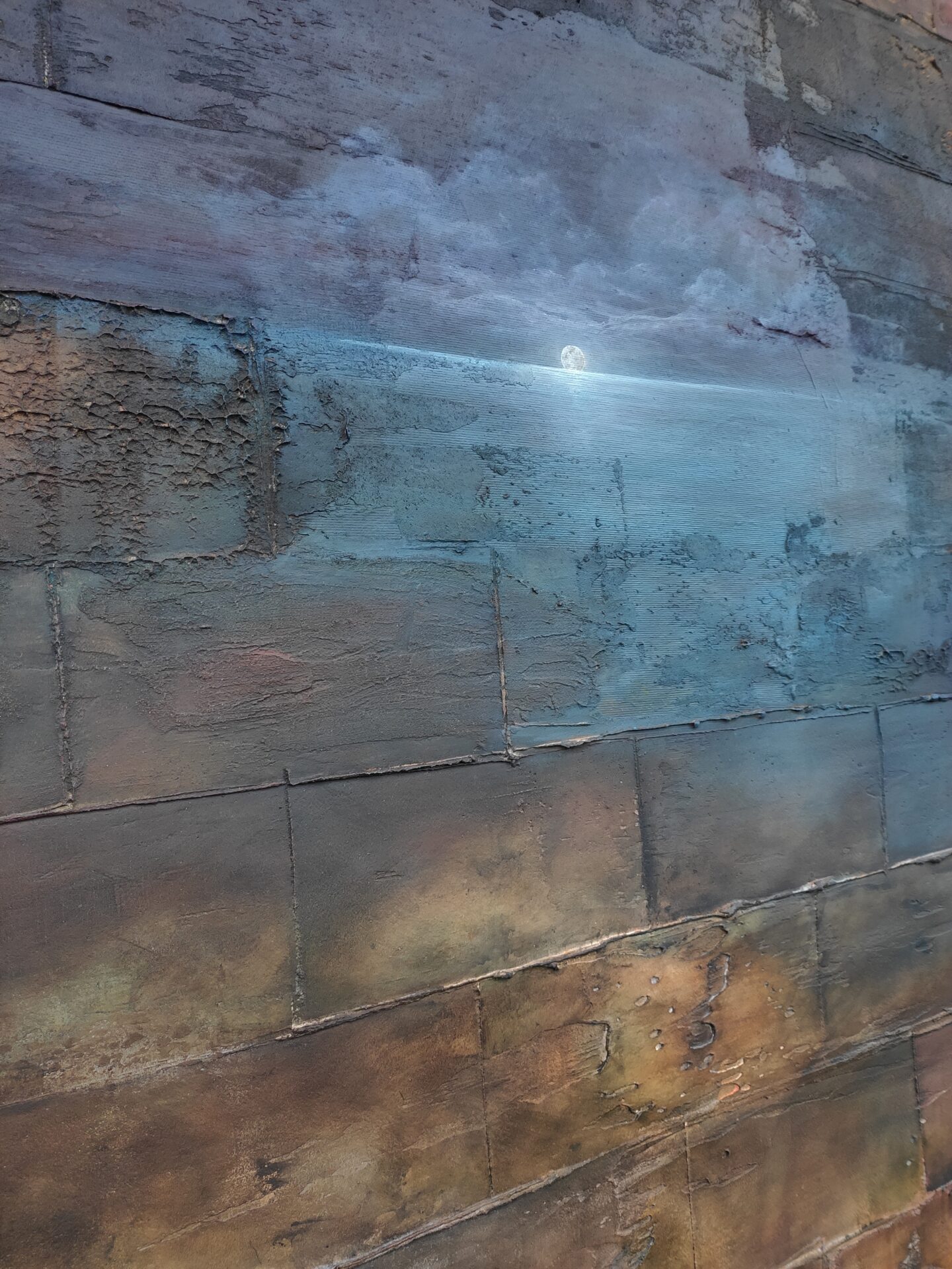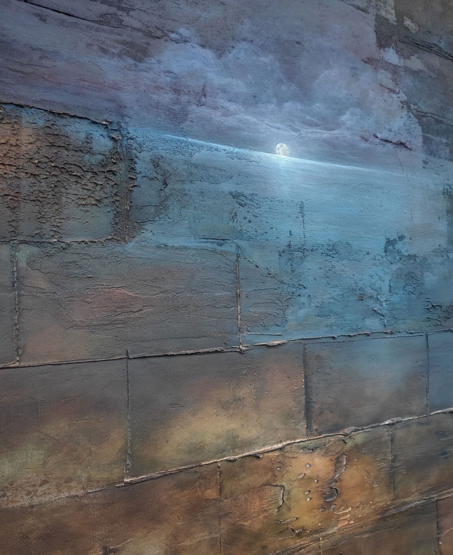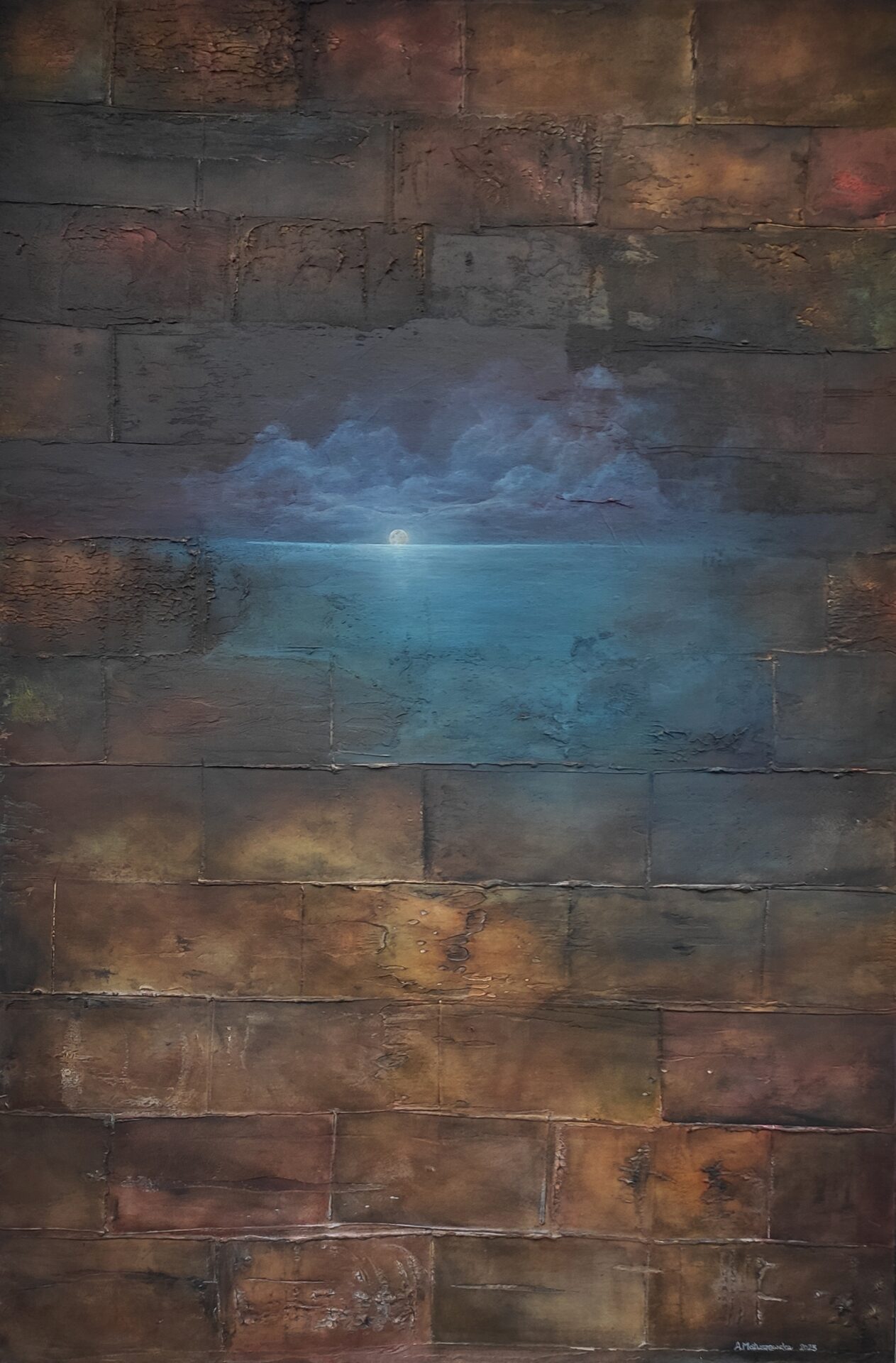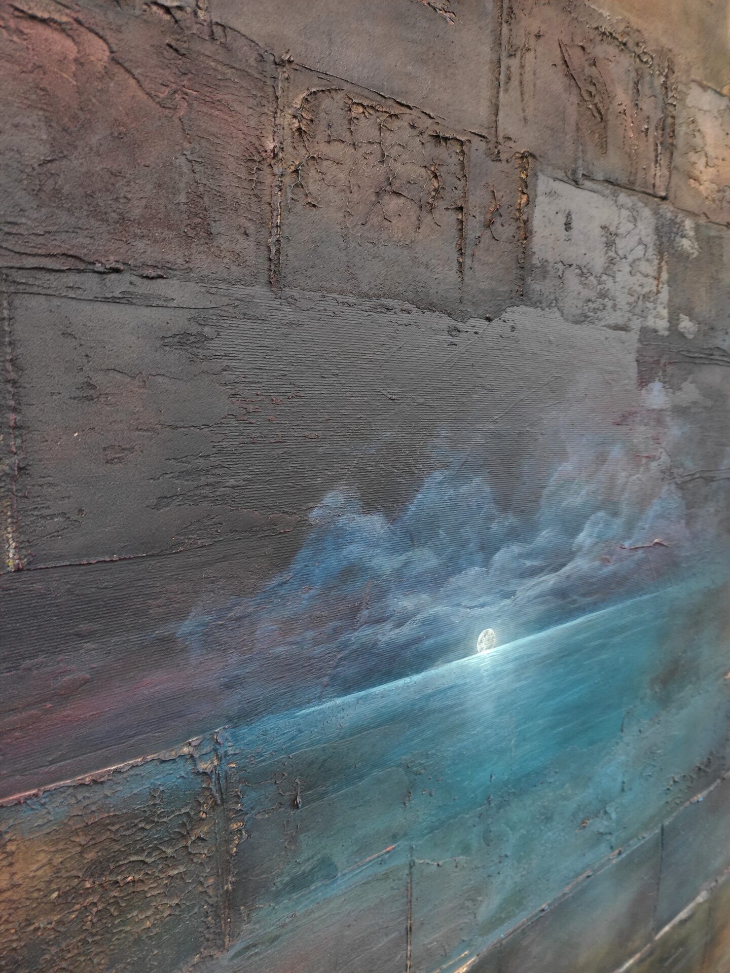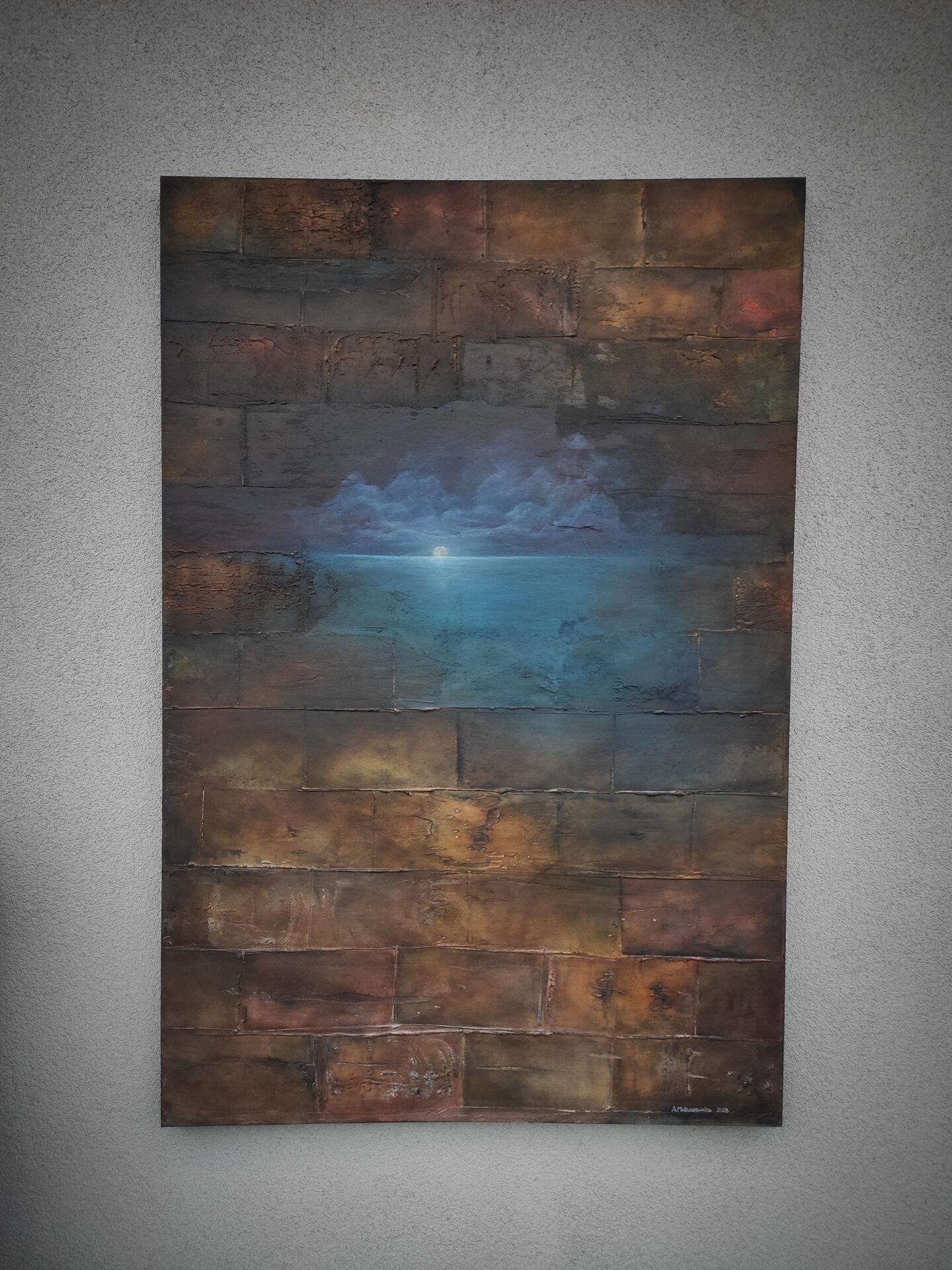 Na sprzedaż prezentuję wyjątkowy obraz wykonany przy użyciu farb akrylowych oraz mix mediów.Obraz niebanalny, intrygujący, przyciągający uwagę i pobudzający wyobraźnię.Wyraźna, niepowtarzalna struktura obrazu, którą można poczuć pod koniuszkami palców, a w jego głębi morski, nocny pejzaż. Spokojny, nostalgiczny klimat, który wydobywa się z płótna koi zmysły i przywołuje wspomnienia.