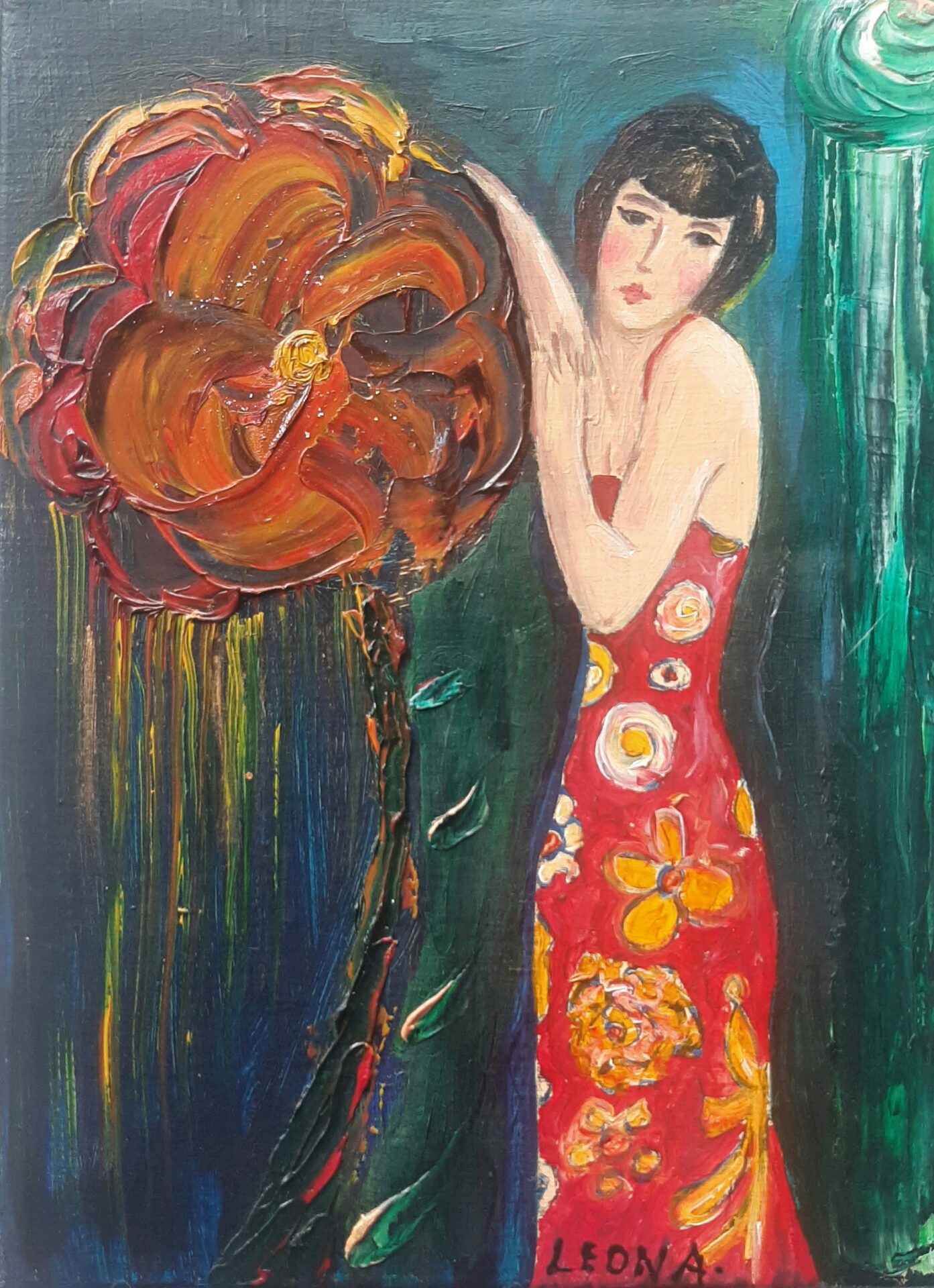 Obrazek na płótnie, namalowany farbami akrylowymi szer. 18 cm wys. 24 cm