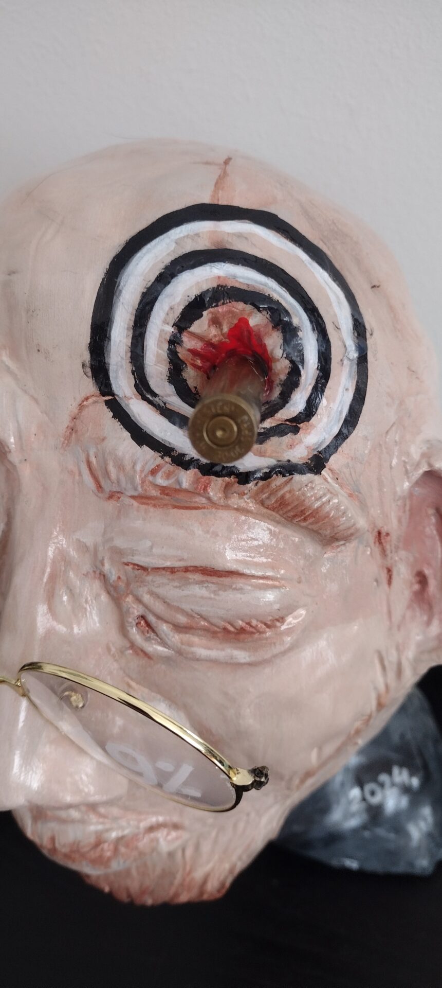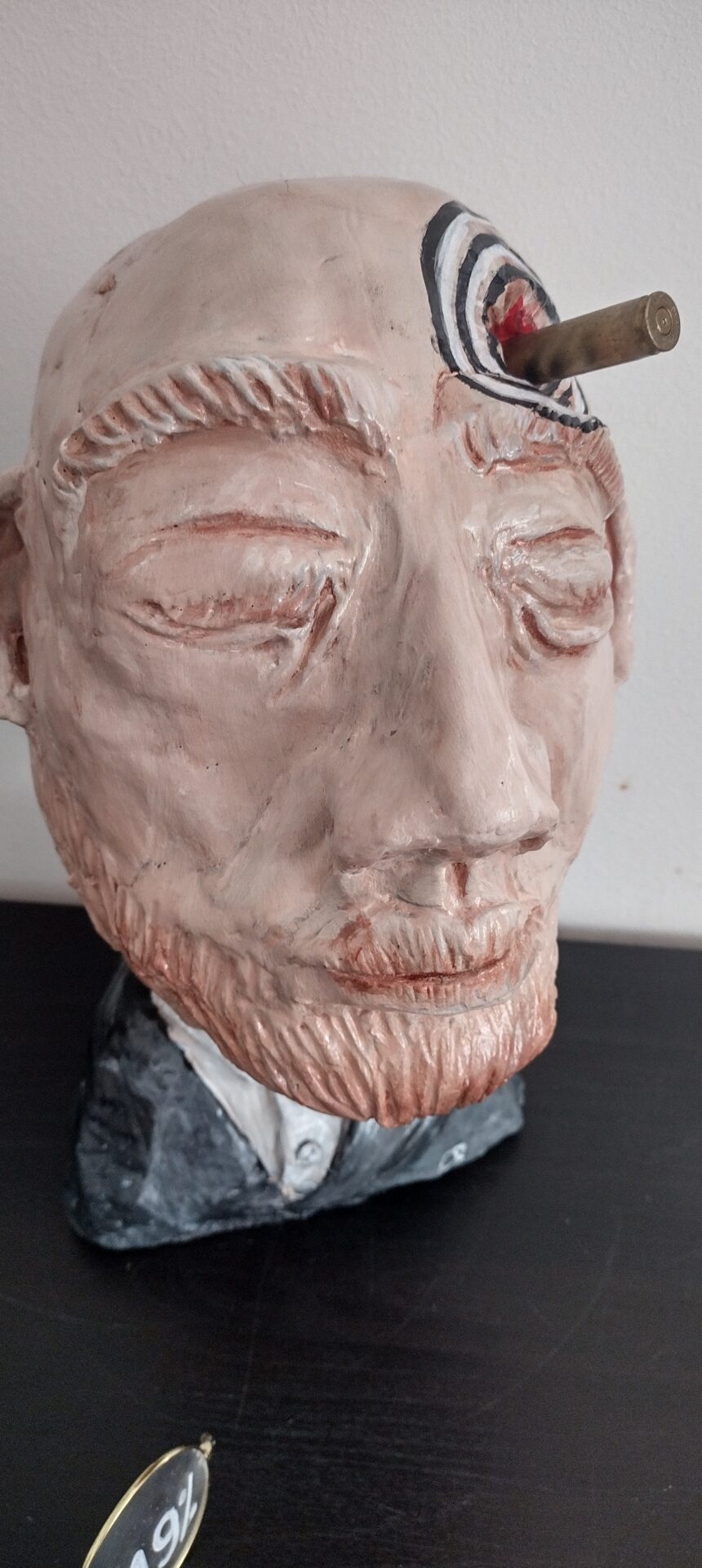 Przedstawiam rzeźbę pełną mojego autorstwa wykonaną z granitu oraz gliny rzeźbiarskiej.elementy dodane to autentyczna łuska Winchester oraz okulary(0).