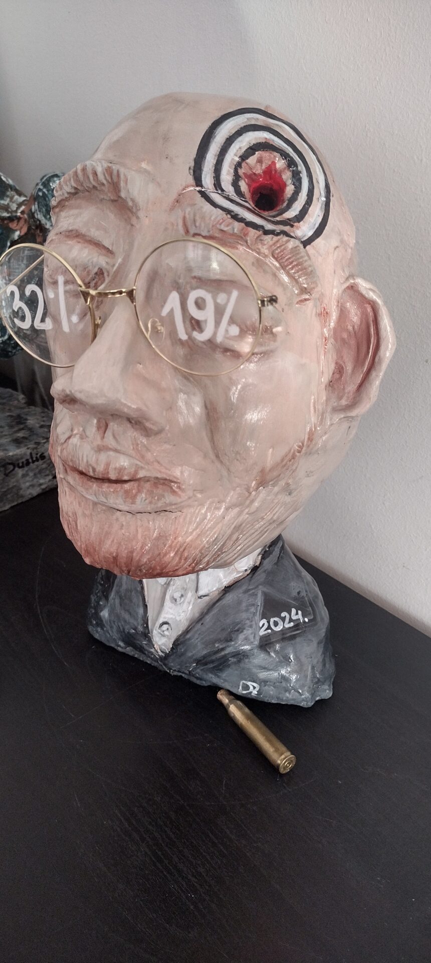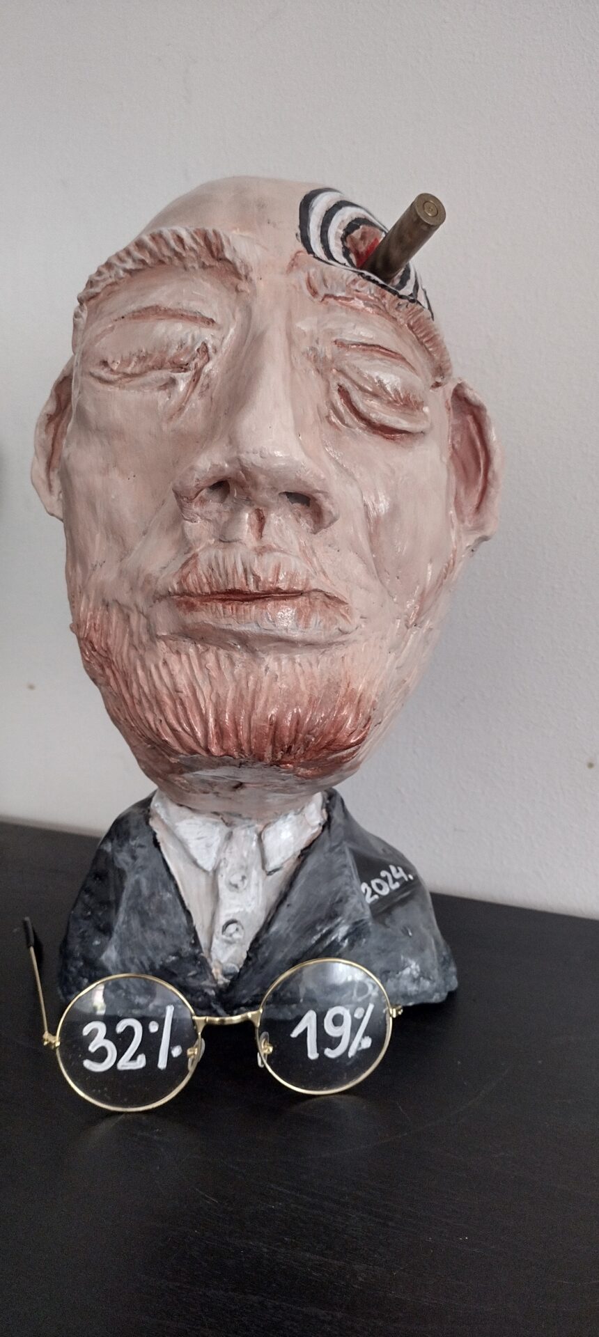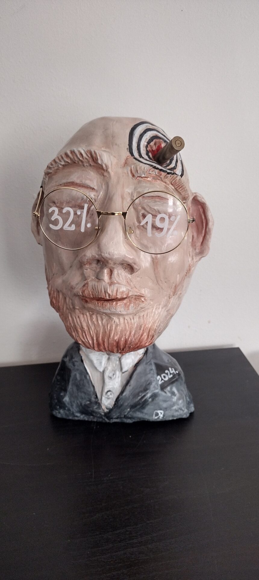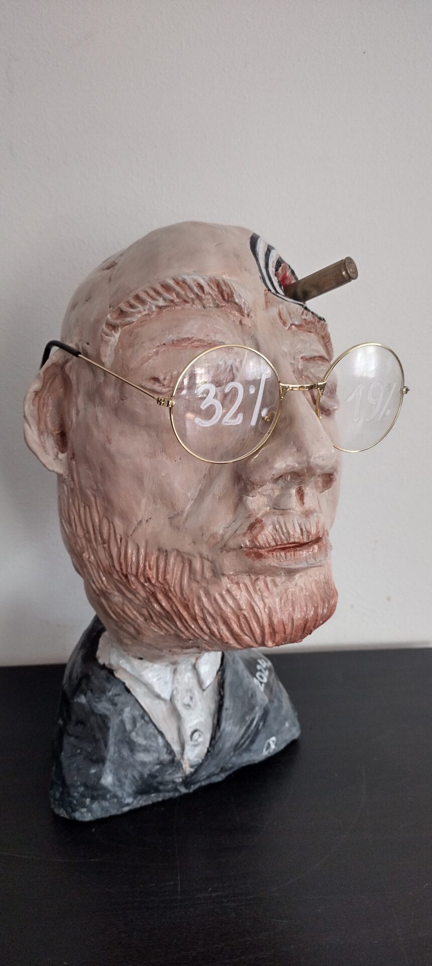 Rzeźba moze spełniać też funkcję użytkową: w miejsce okularów podatnika można założyć swoje 🙂
