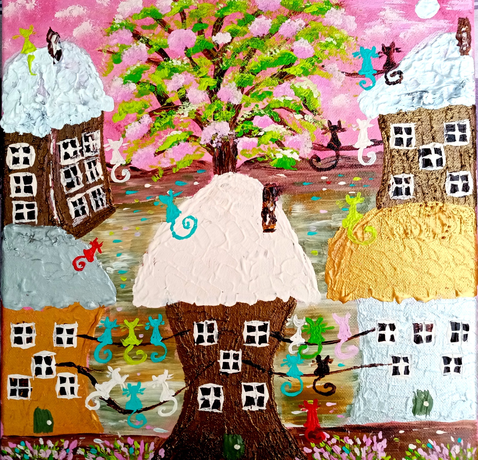 Obraz jest mojego autorstwa. Boki zamalowane co daje możliwość powieszenia go od razu na ścianę.