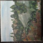 Obraz wykonany farbami akrylowymi na płótnie. Dzieło przedstawia pole.